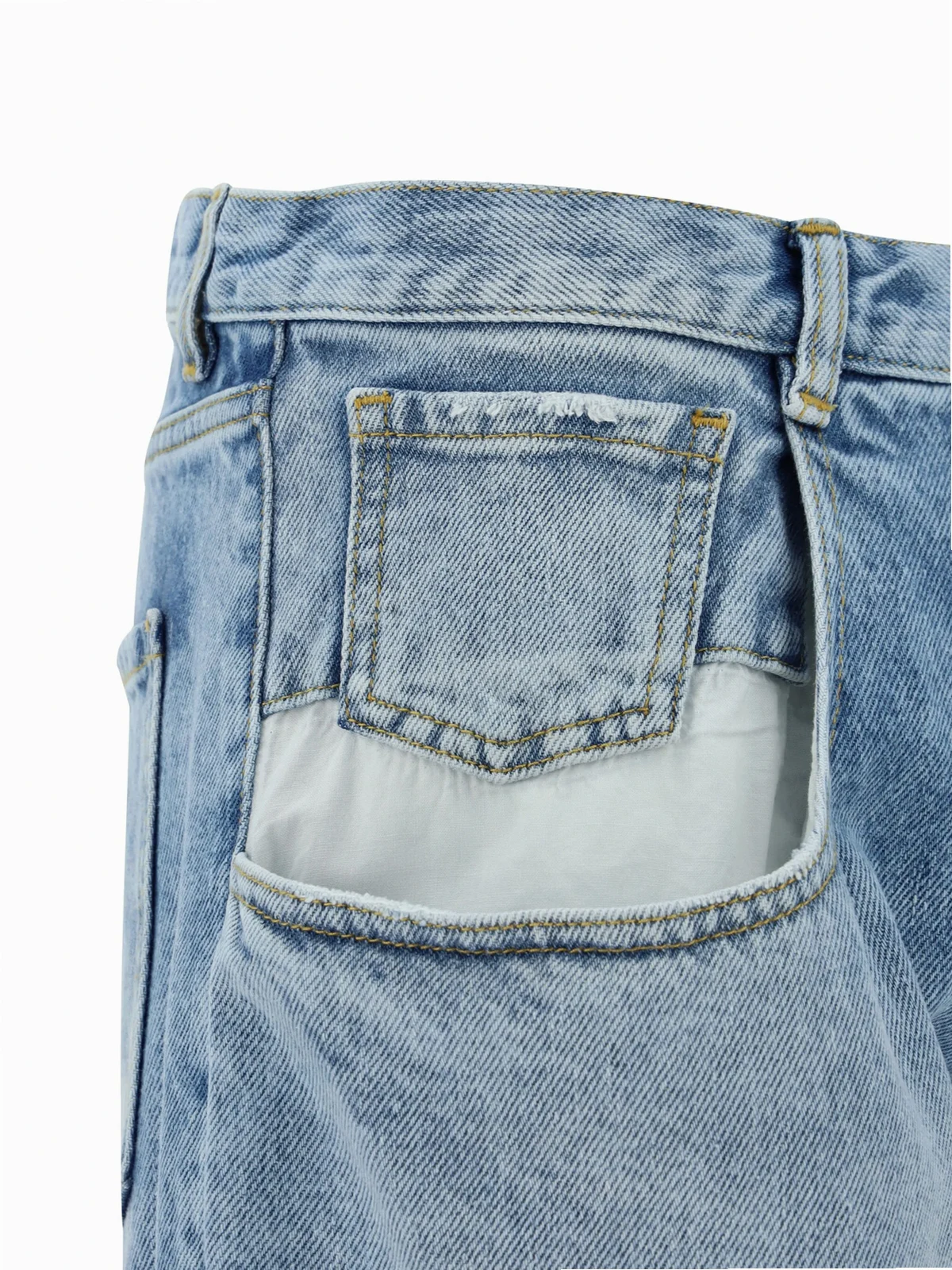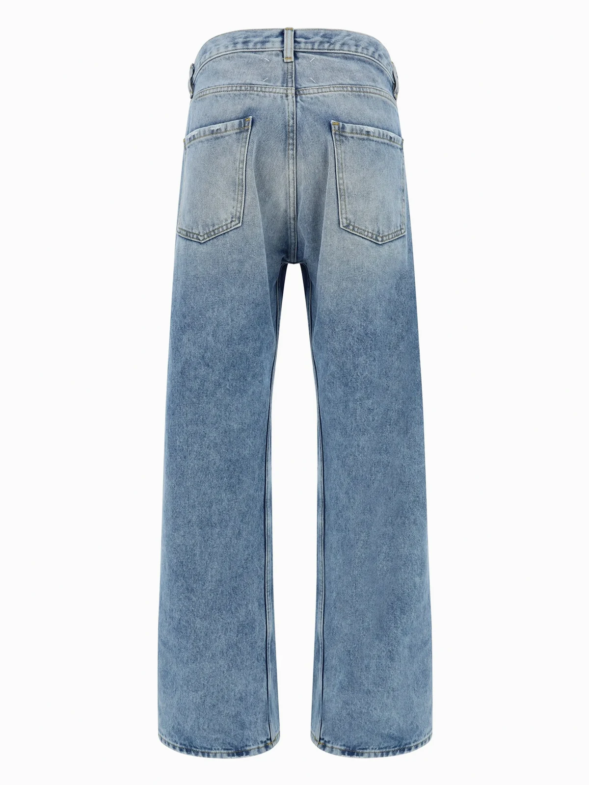 Blaue Bootcut-Jeans aus Baumwolle von Maison Margiela mit folgenden Eigenschaften: mittlere Taillenhöhe, reguläre Länge, Reißverschluss mit Knopf und Hintertaschen.
