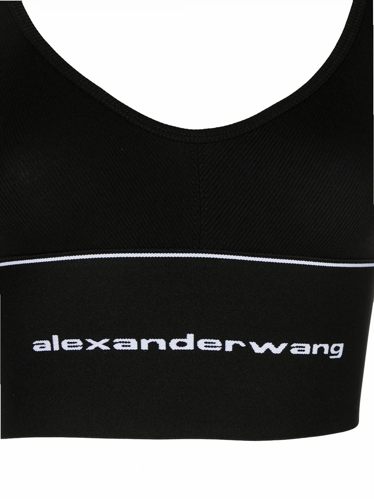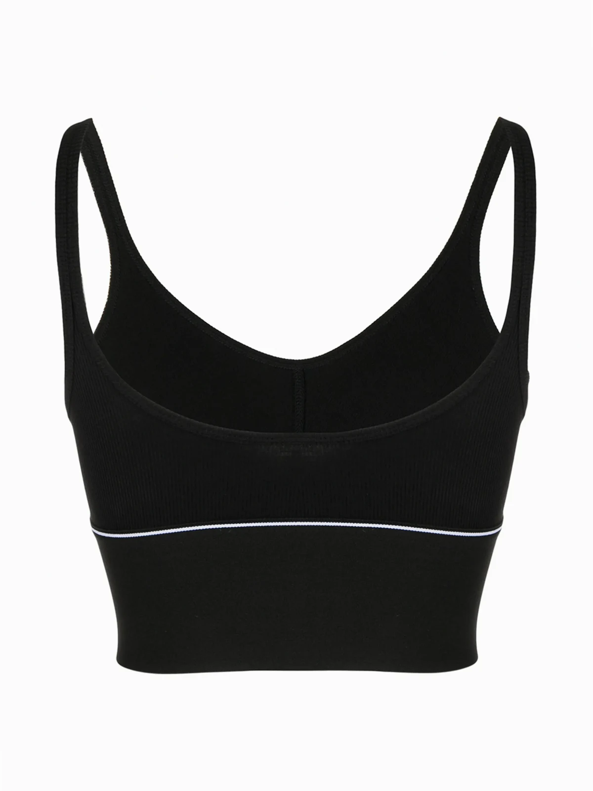 Fein gerippt, Unterband mit Logo, bügellos, elastisches Unterband, schmale Schulterriemen, U-Ausschnitt, runder Rückenausschnitt, Cropped-Design. Farbe: Schwarz. Dieses Piece darf nur über Ihre eigene Unterwäsche anprobiert werden.