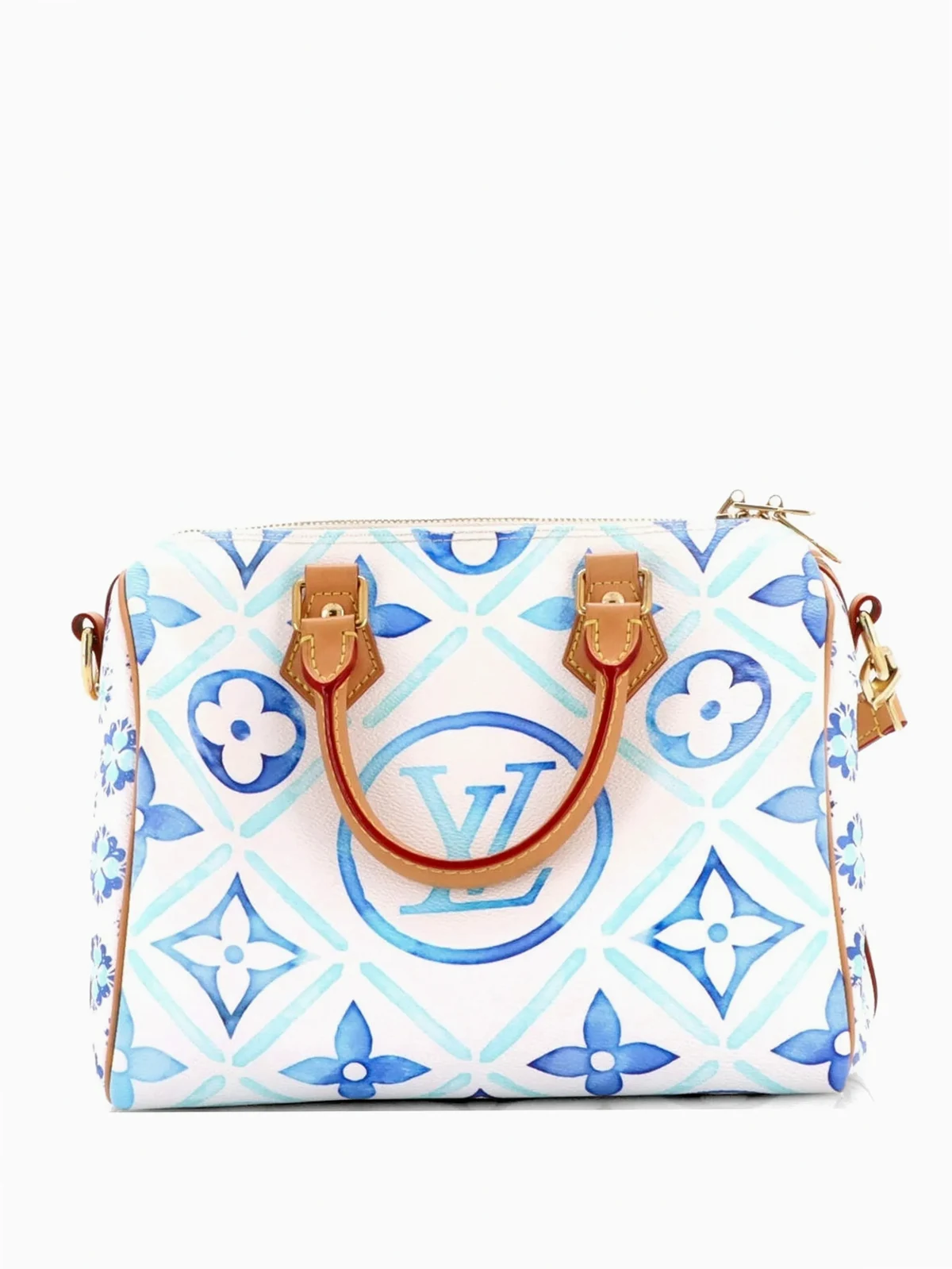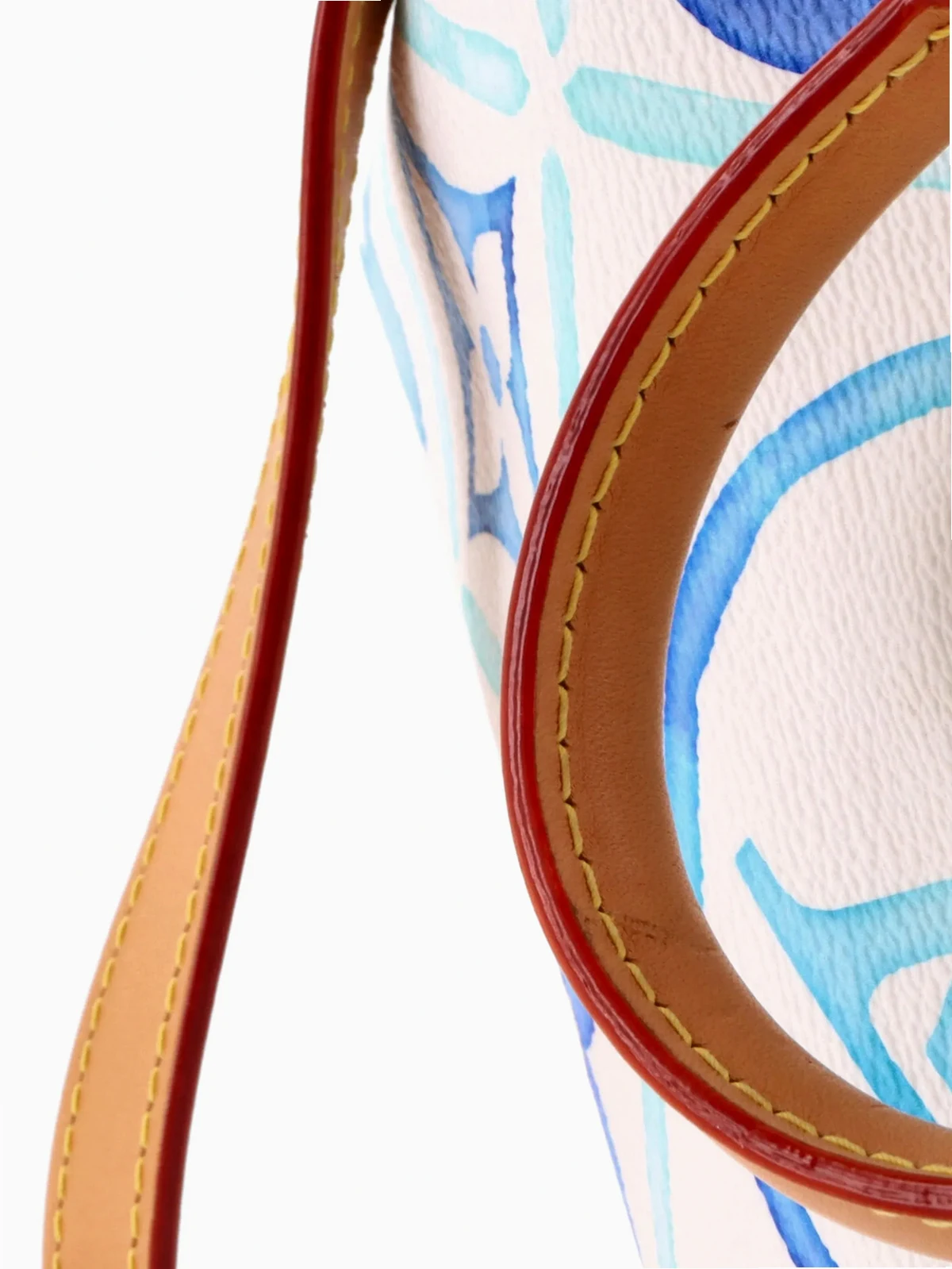 Schäden: Außen: kleine Schrammen, Falten. Henkel/Riemen: kleine Falten, kleine Abriebe. Innen: Zigarettengeruch. Beschläge: kleine Kratzer, leicht angeschlagen.