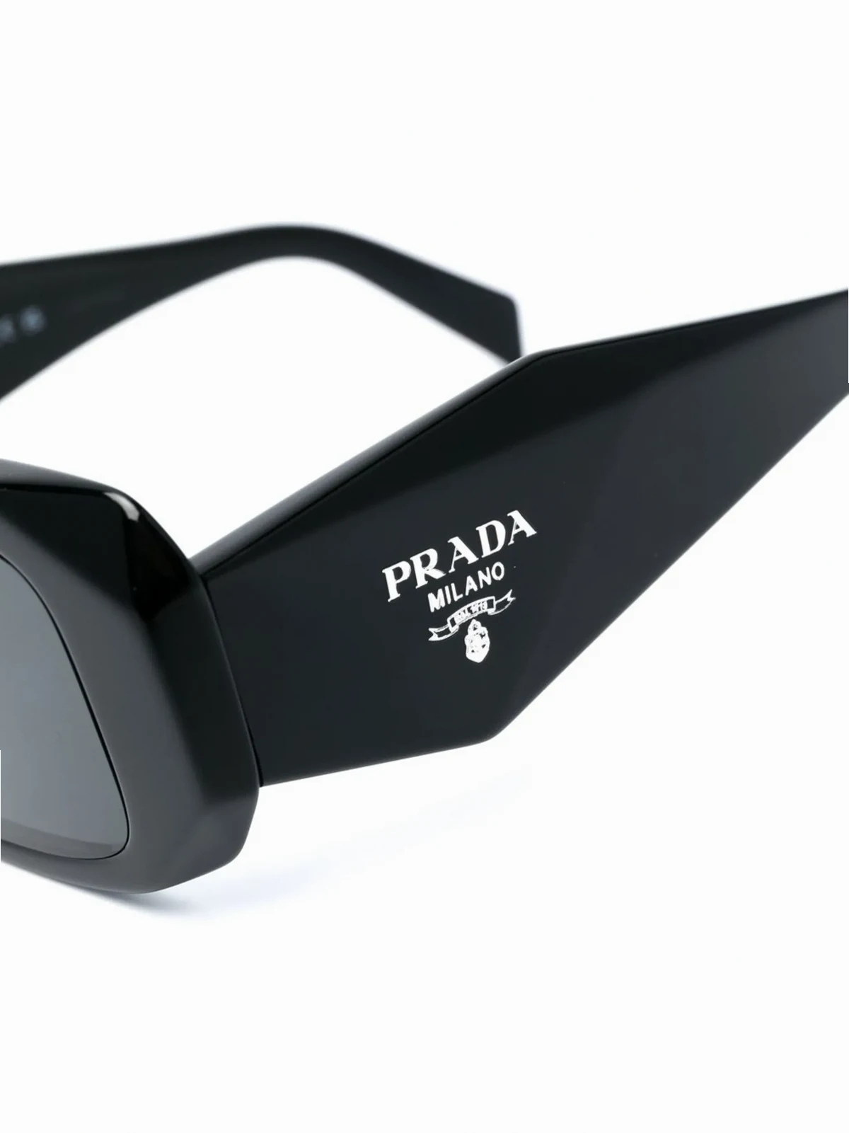 Schwarz, Azetat, grau gefärbte Gläser, eckiges Gestell, silberfarbenes Logo, Logo-Print am Bügel, Design-Bügel. Diese Brille wird mit einer Schutzhülle geliefert.