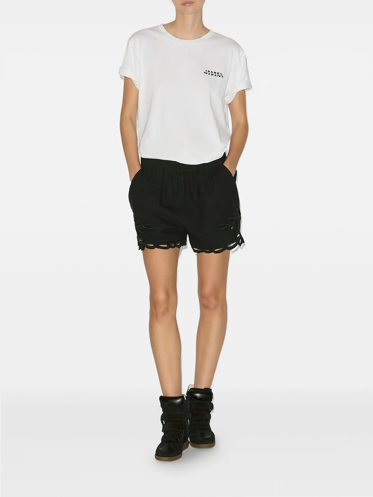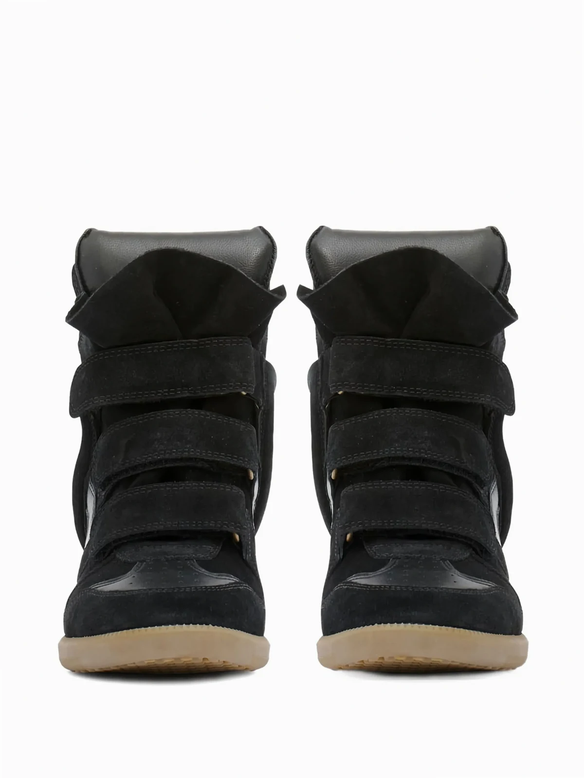 Schwarze Wedge-Sneakers mit Klettverschluss aus Leder von Isabel Marant mit folgenden Eigenschaften: knöchelhoch, verstellbare Träger und versteckter Keilabsatz.