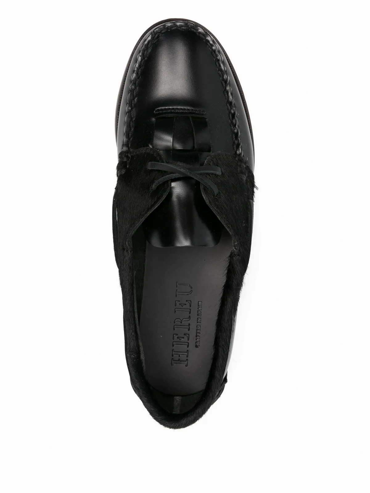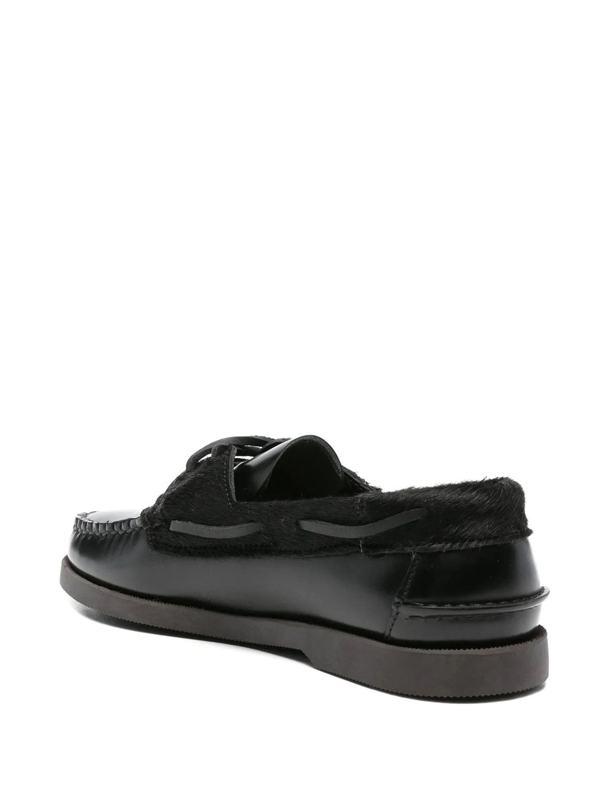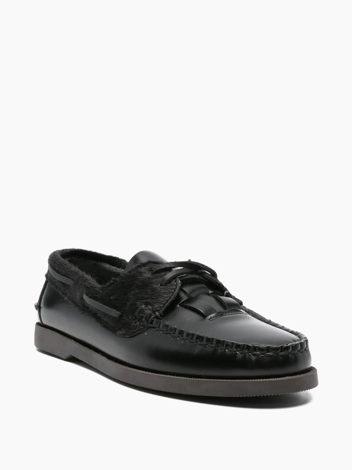 – Loafer in Schwarz mit eckiger Zehenpartie und Fransen-Detail