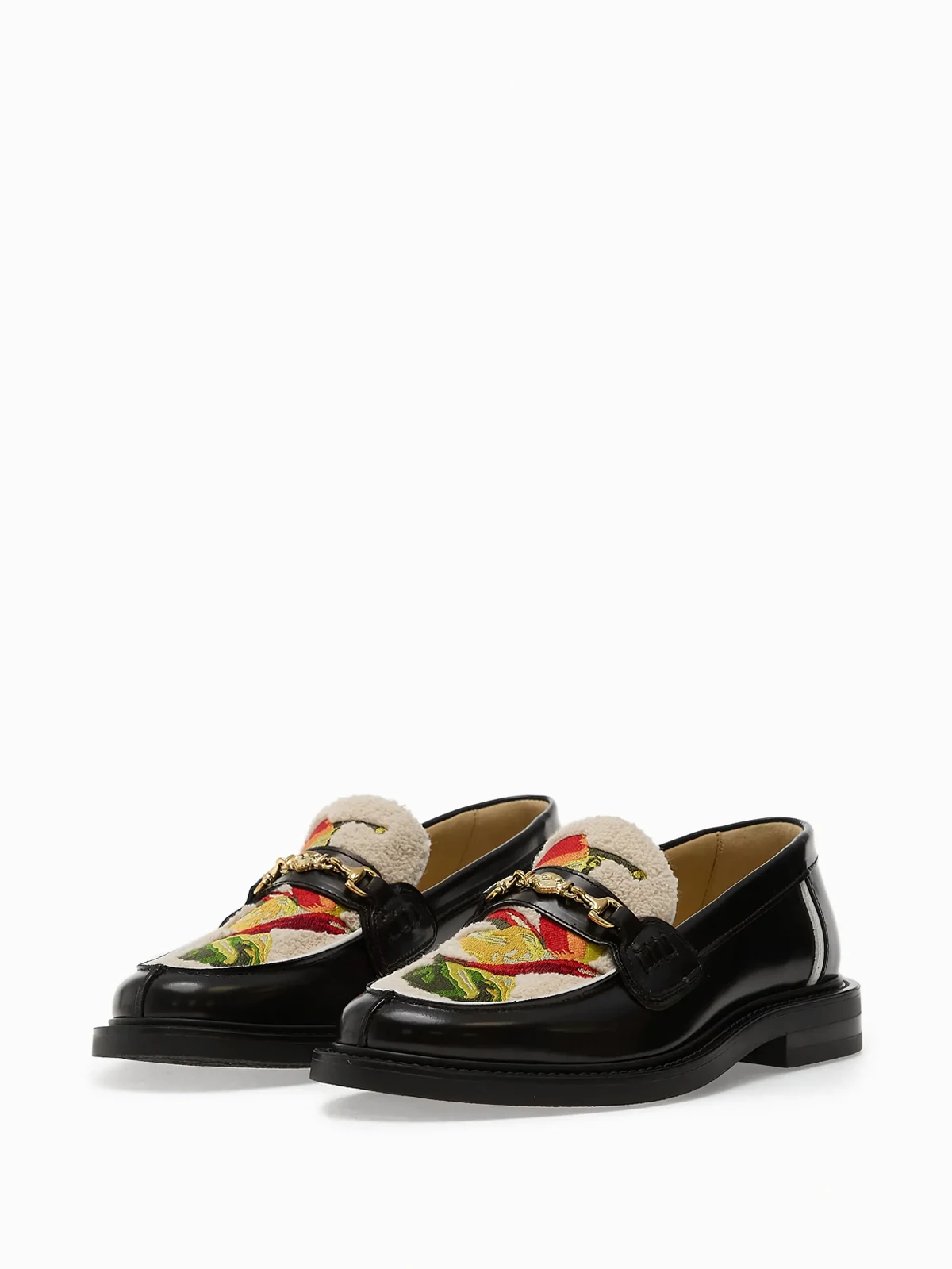 – Loafer in Schwarz mit eckiger Zehenpartie und Fransen-Detail