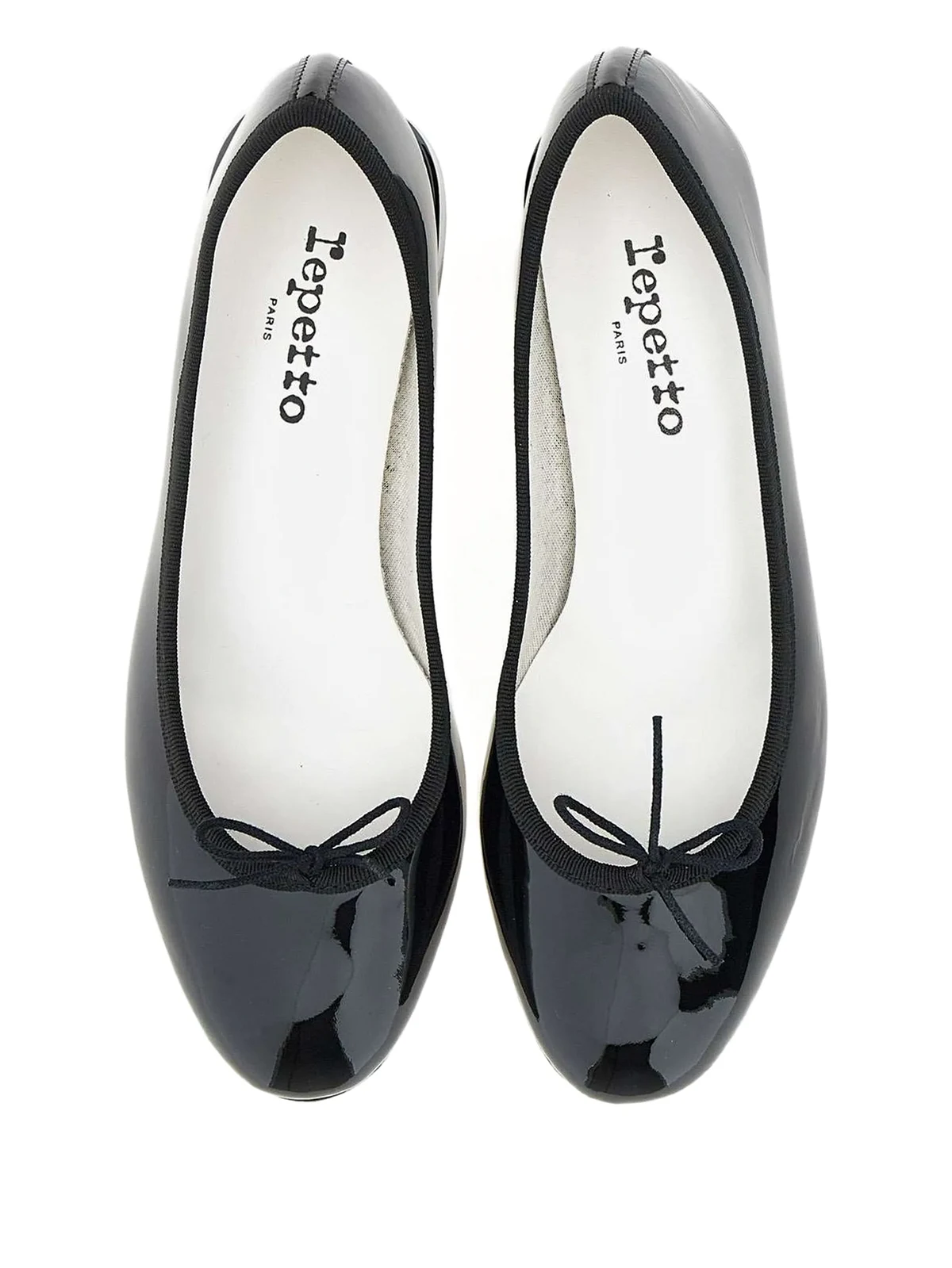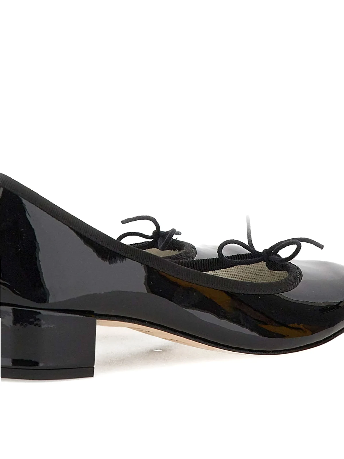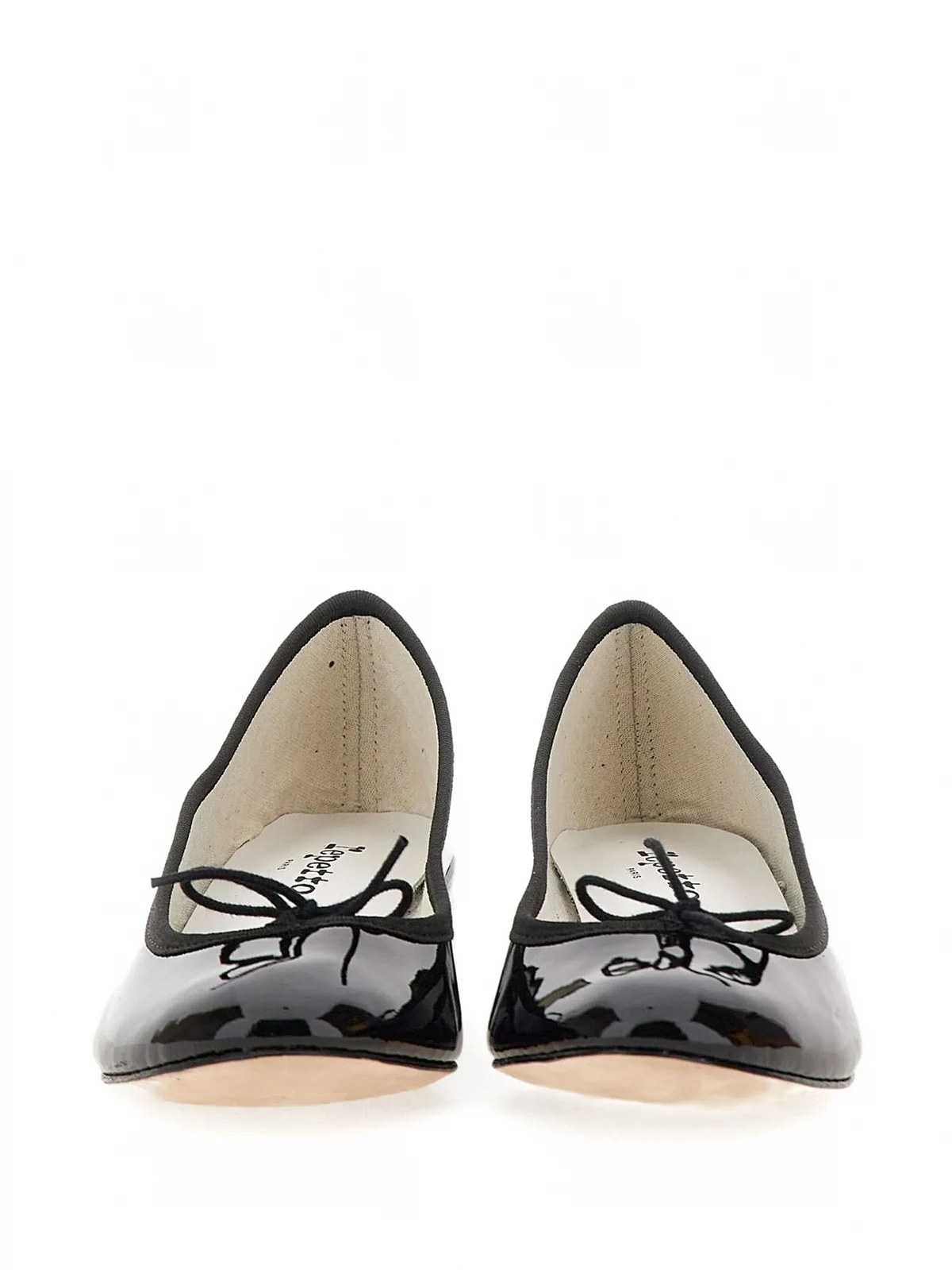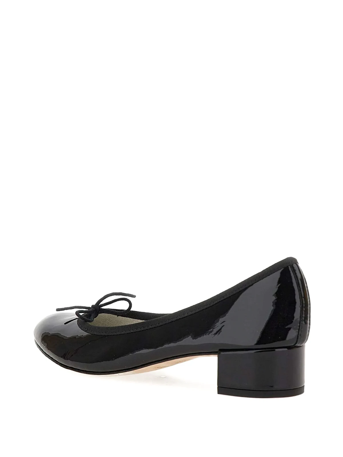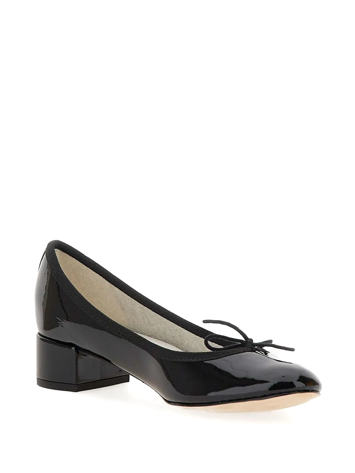 Schwarze 'Camille' Pumps aus Lackleder und Canvas von Repetto. Dieser Artikel fällt klein aus; bitte wählen Sie 1 ½ Nummern größer aus.
