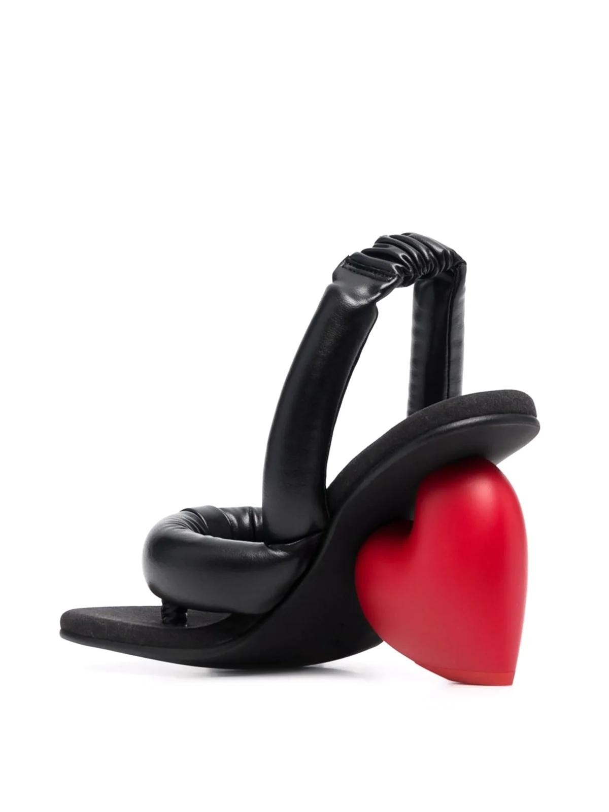 Herz-Motiv, elastischer Slingback-Riemen, eckige Kappe, Logo-Prägung im Fußbett.