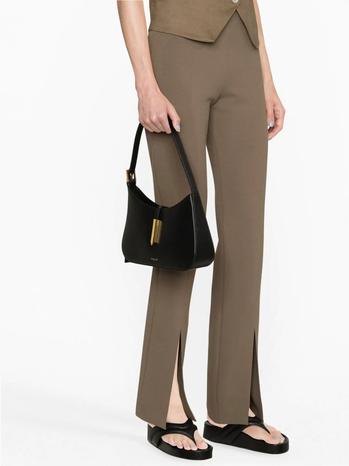 – Schultertasche aus Wildlederimitat in Hellbraun mit Doppelriemen