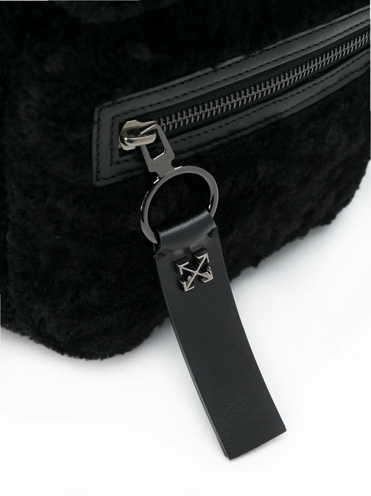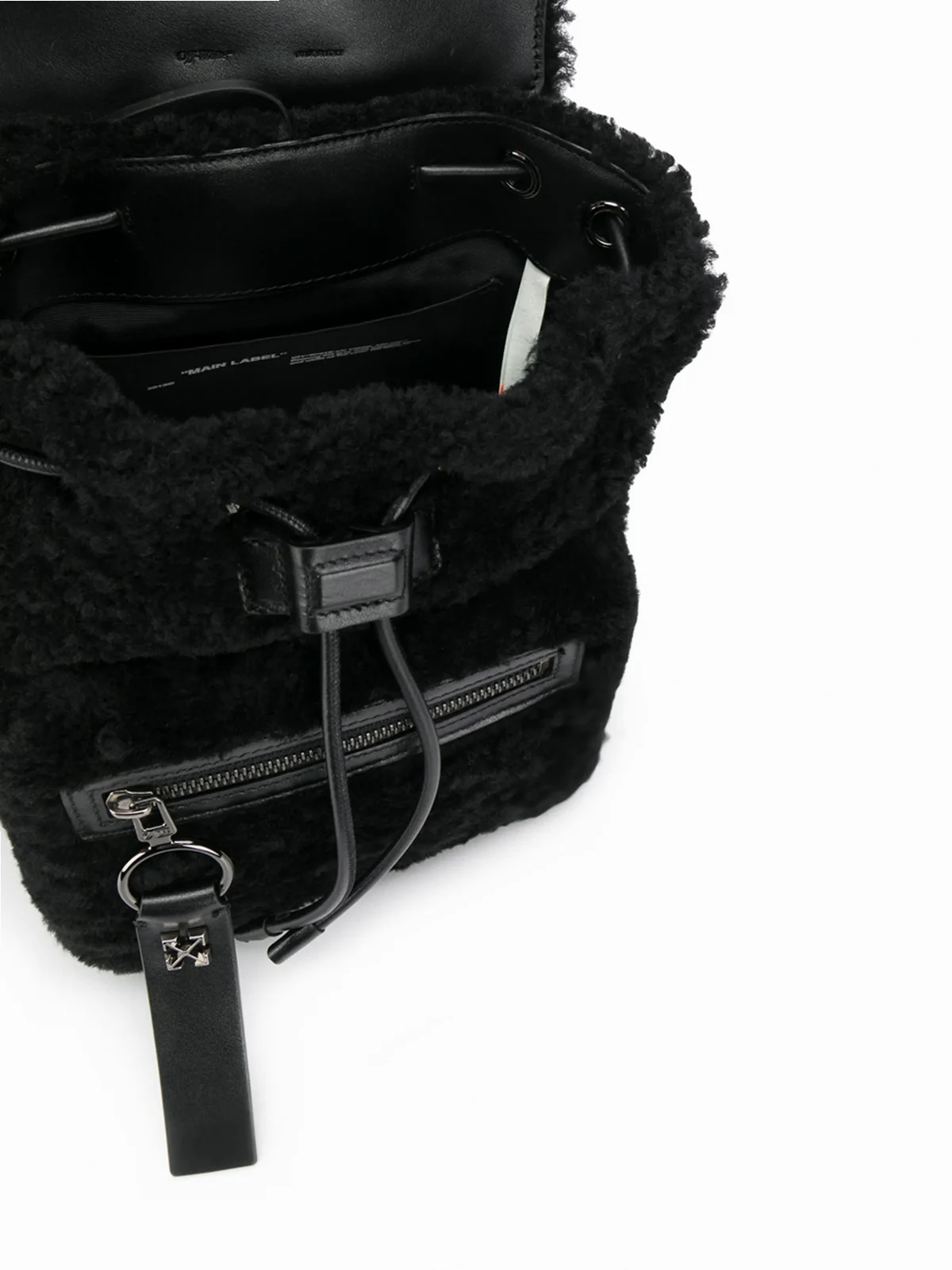 'Montone Binder' Rucksack von Off-White. Merkmale: Henkel, verstellbare Schultergurte, Vordertasche mit Reißverschluss, Klappdeckel mit Magnetverschluss, Kordelzug, großes Innenfach, Innentasche, Logo-Stempel innen und silberfarbene Beschläge.
