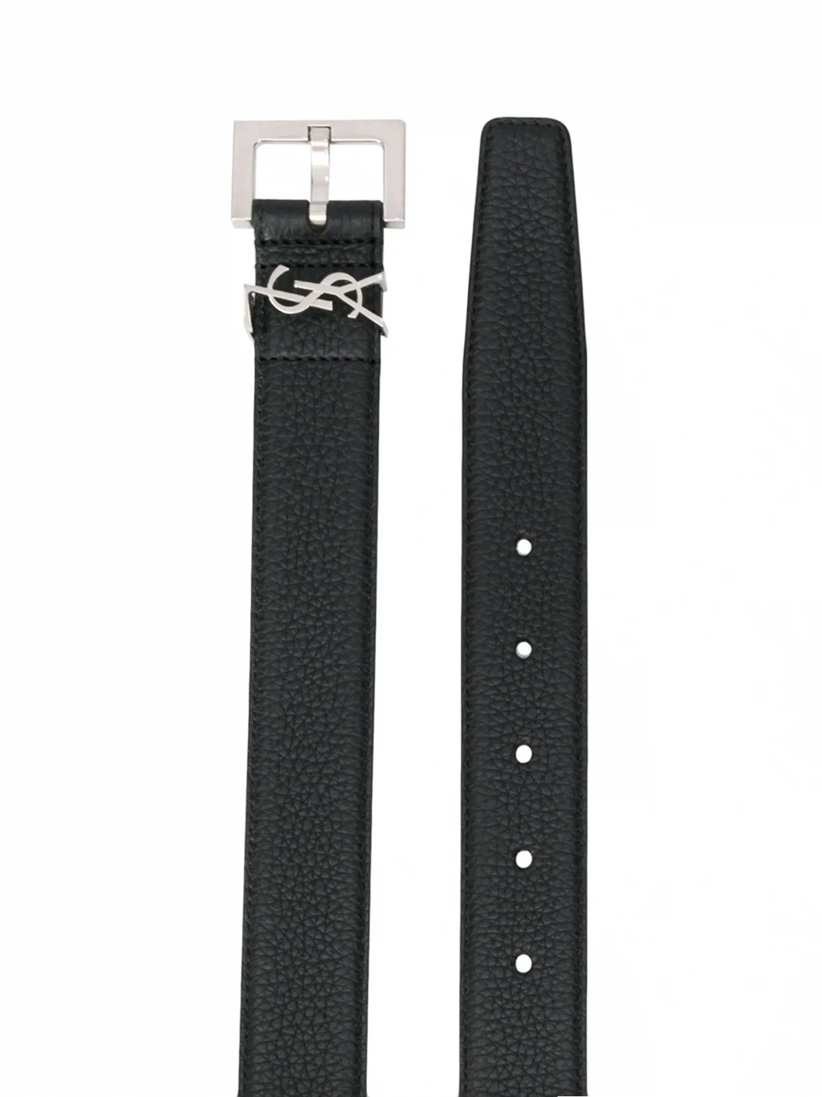 Gekörnte Oberfläche, silberfarbenes Logo-Schild, Schnallenverschluss, Lochmuster. Farbe: Schwarz. Material: Kalbsleder.