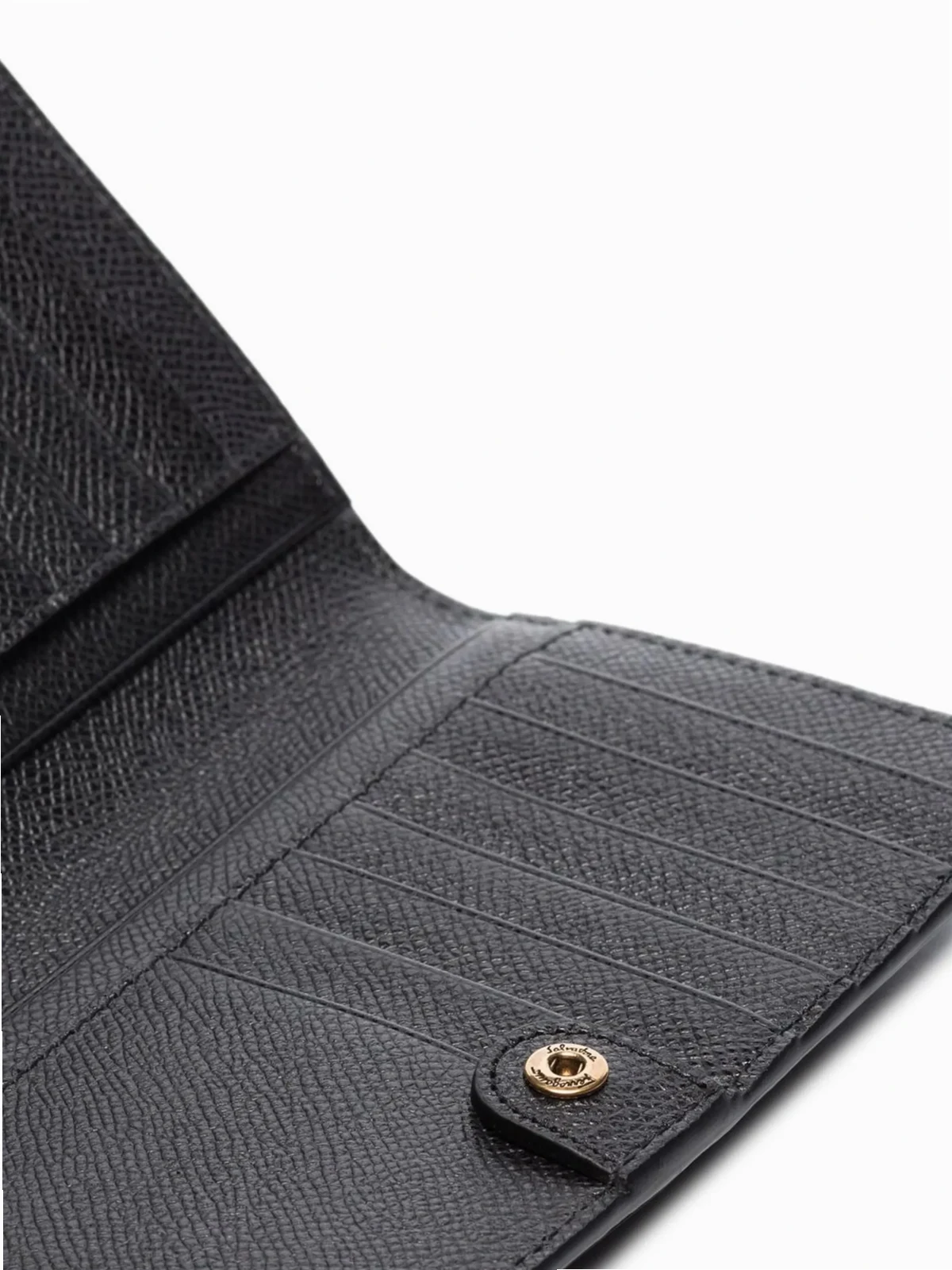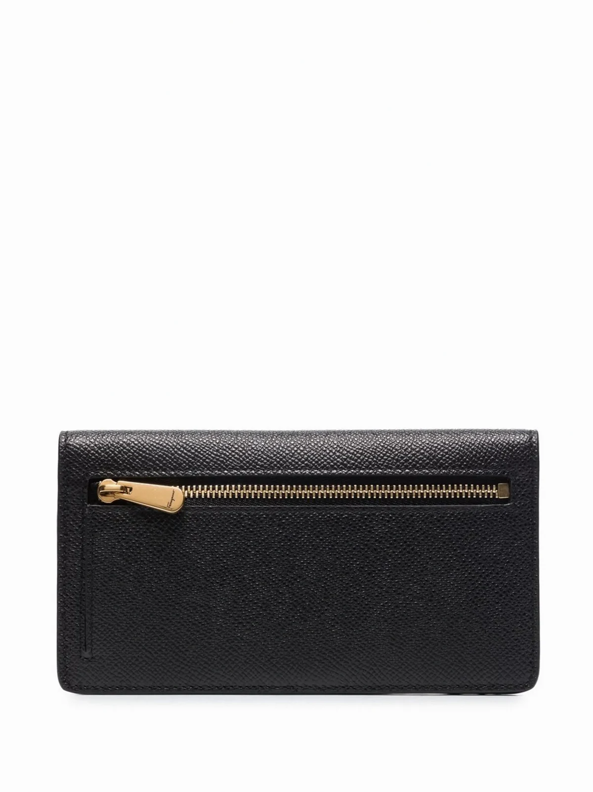 Goldfarbene Beschläge, Gancini-Logo, verdeckter Druckknopfverschluss, Kartenfächer innen, Geldscheinfach innen, Gesäßtasche mit Reißverschluss . Farbe: Schwarz. Material: Leder.