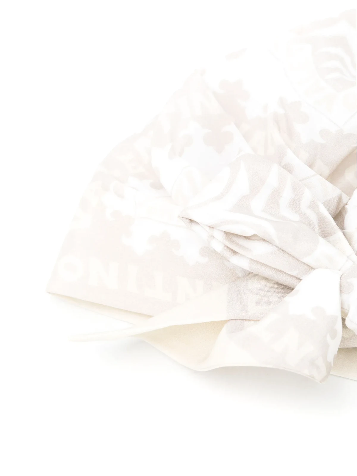 Ecru, Weiß, Logo-Stickerei, Schleifendetails, elastischer Saum hinten, variable Passform.