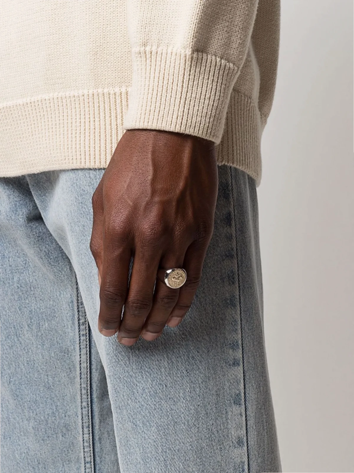 Münzdetails, Siegelring, polierter Effekt. Material: Sterlingsilber.
