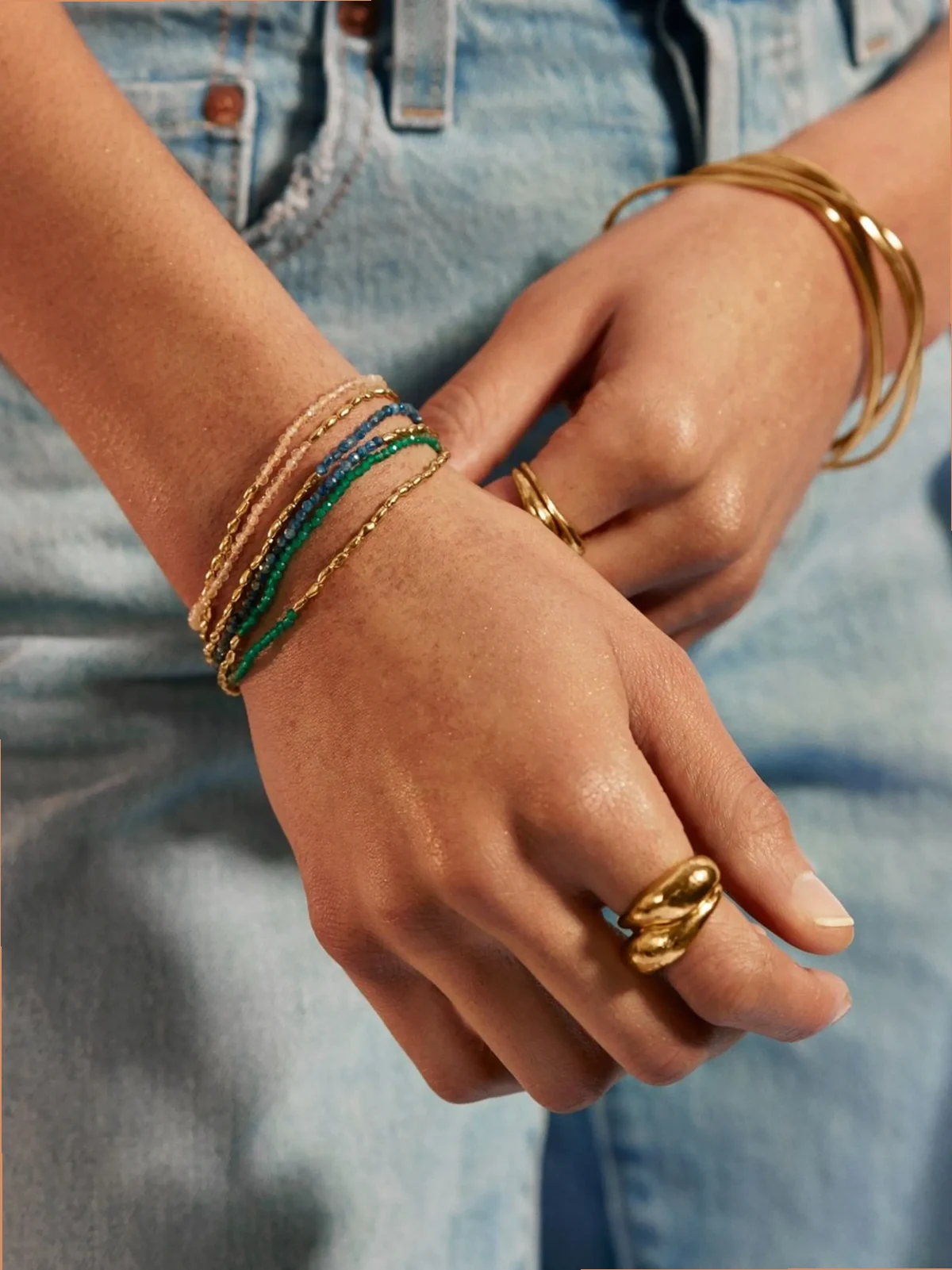 Goldfarben, Goldvermeil, Layering-Look, Perlenkette, mit Schmucksteinen besetzt, Karabinerverschluss, variable Passform. Conscious: .
