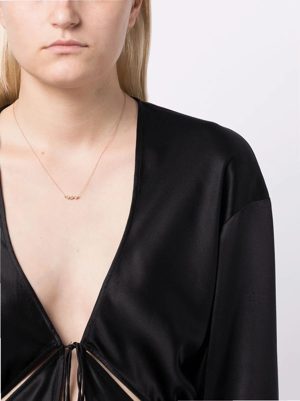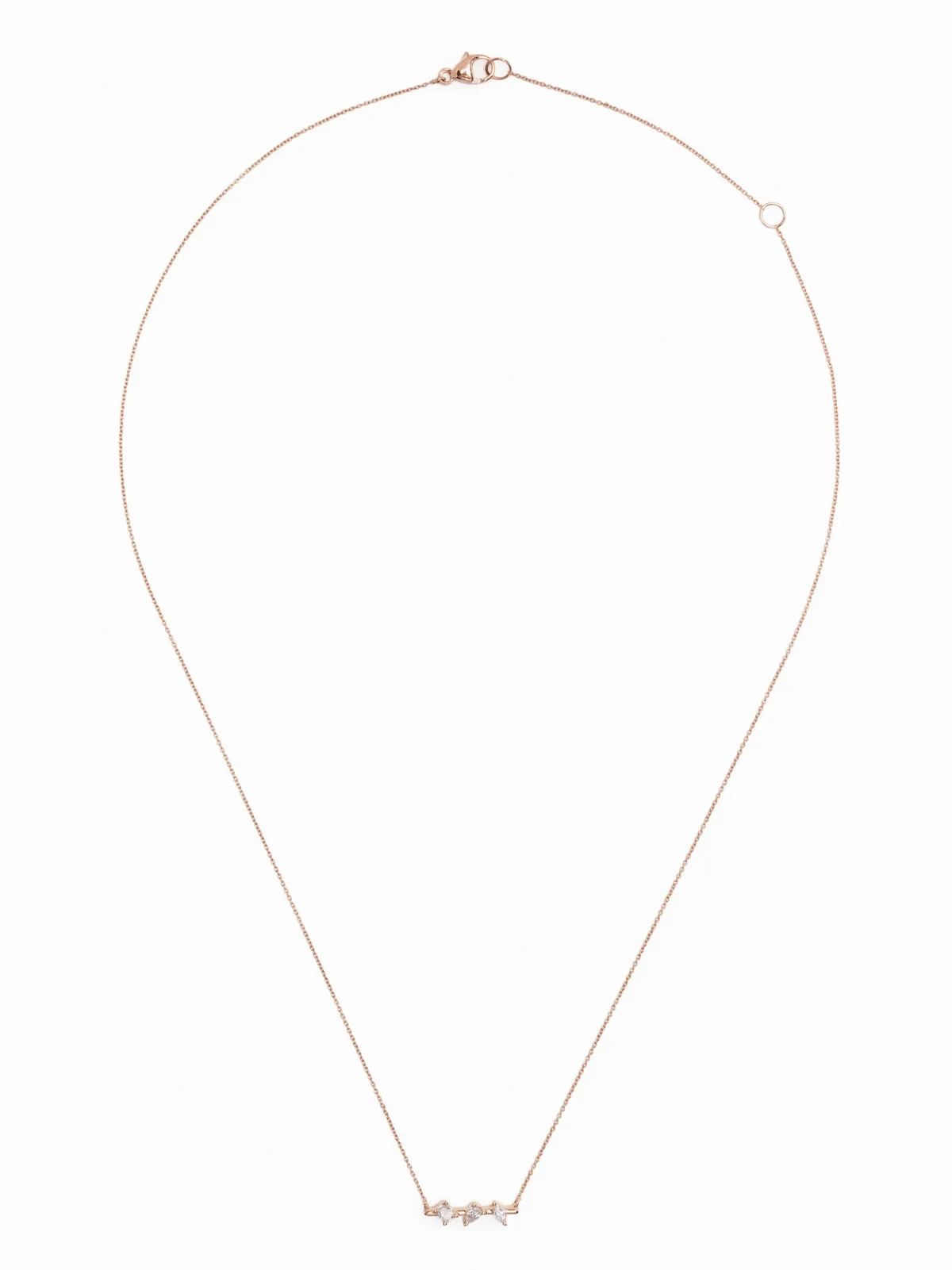 14kt Roségold, poliertes Finish, filigrane Kette, Stück, Krappenfassung, Diamant mit Ovalschliff, Diamant mit Birnenschliff, Diamant mit Marquise-Schliff, Karabinerverschluss. Das tägliche Tragen und externe Faktoren können Goldoberflächen und Edelsteinen ihren Glanz nehmen. Mit nicht abrasiven Produkten, die speziell für die Reinigung von Schmuck geeignet sind, können Sie den Glanz ihrer Pieces erhalten.