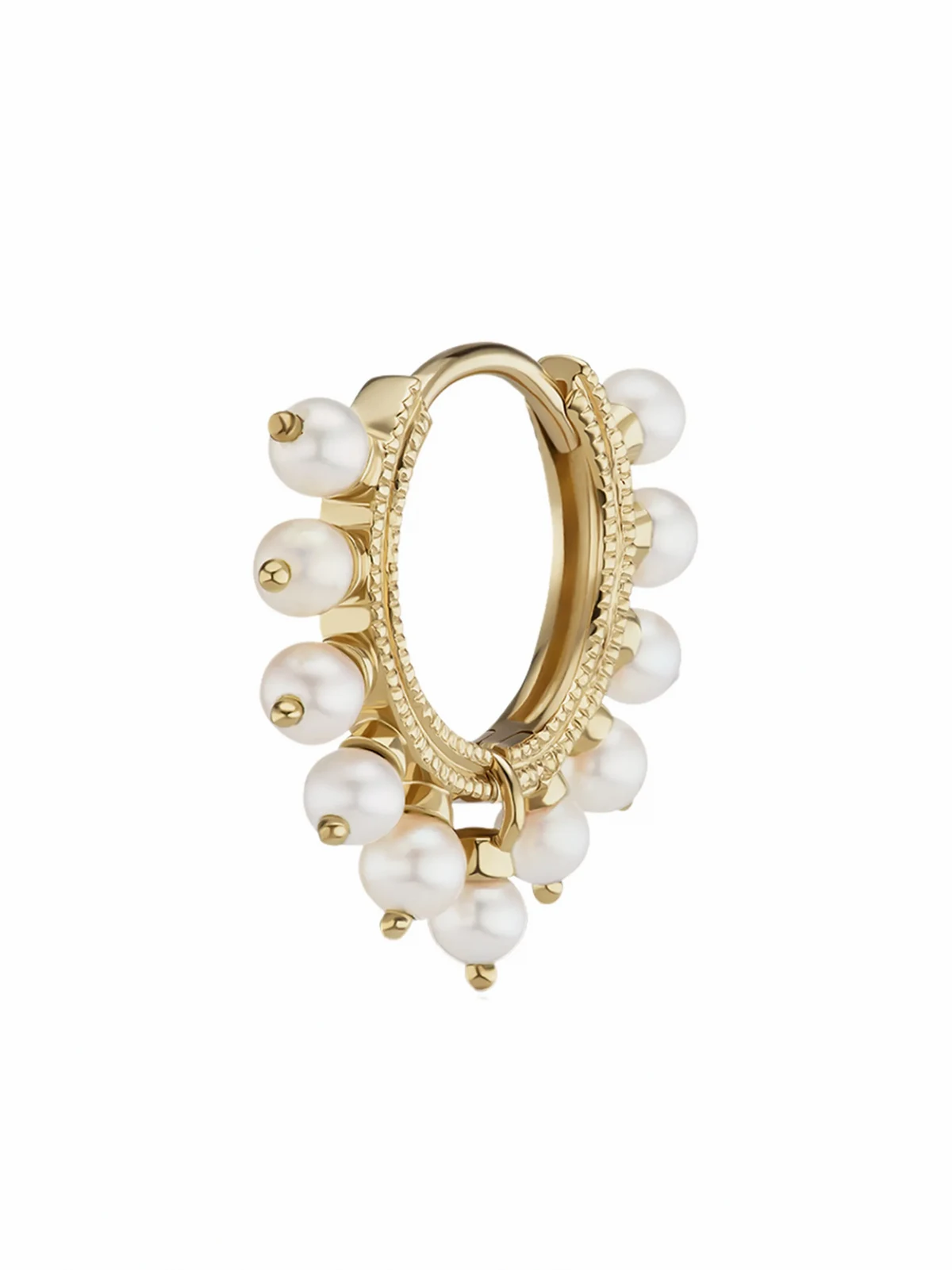 Kleine Creolen, Perlendetail, Scharnierverschluss, Scharnierverschluss. Weniger ist mehr – hierbei handelt es sich um einen einzelnen Ohrschmuck.