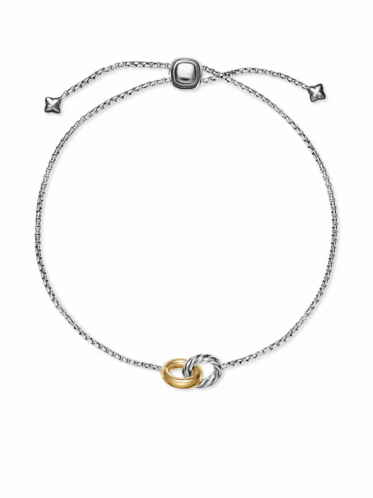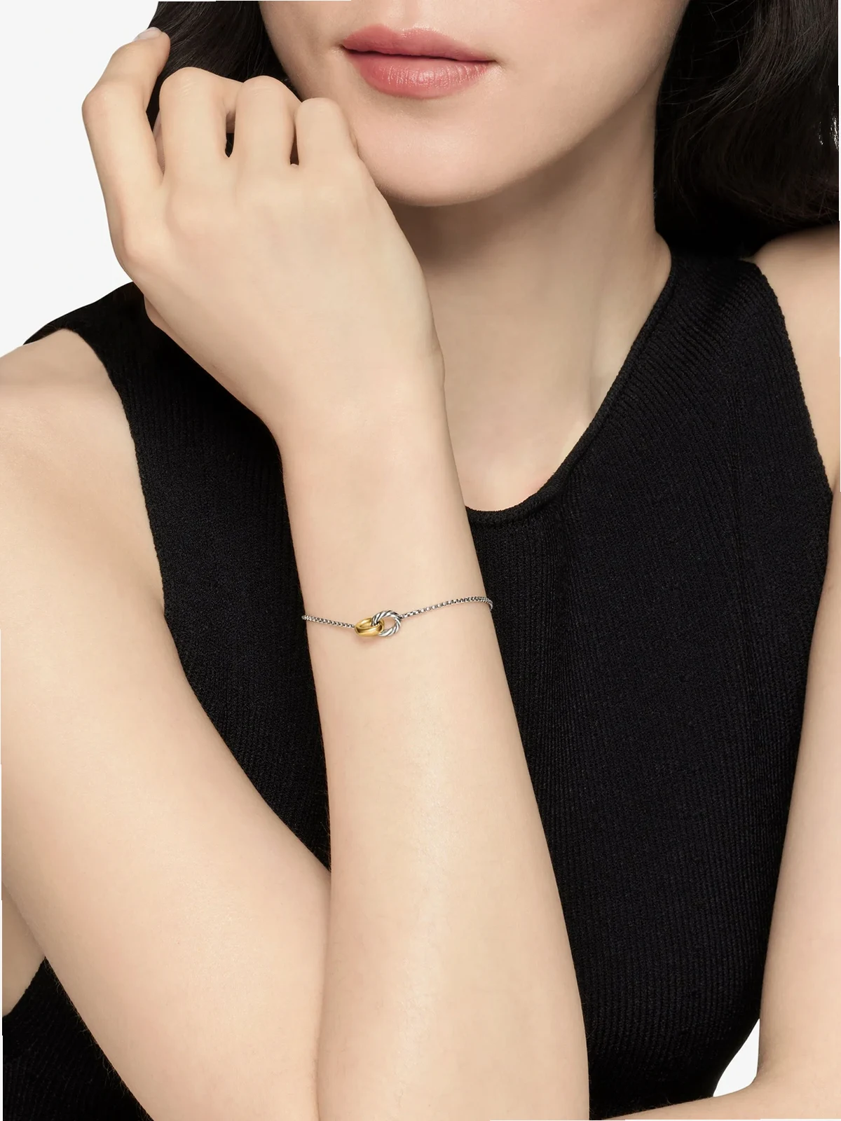 14kt Petite Cable Gelbgold- und Sterlingsilberarmband mit Diamant 15mm