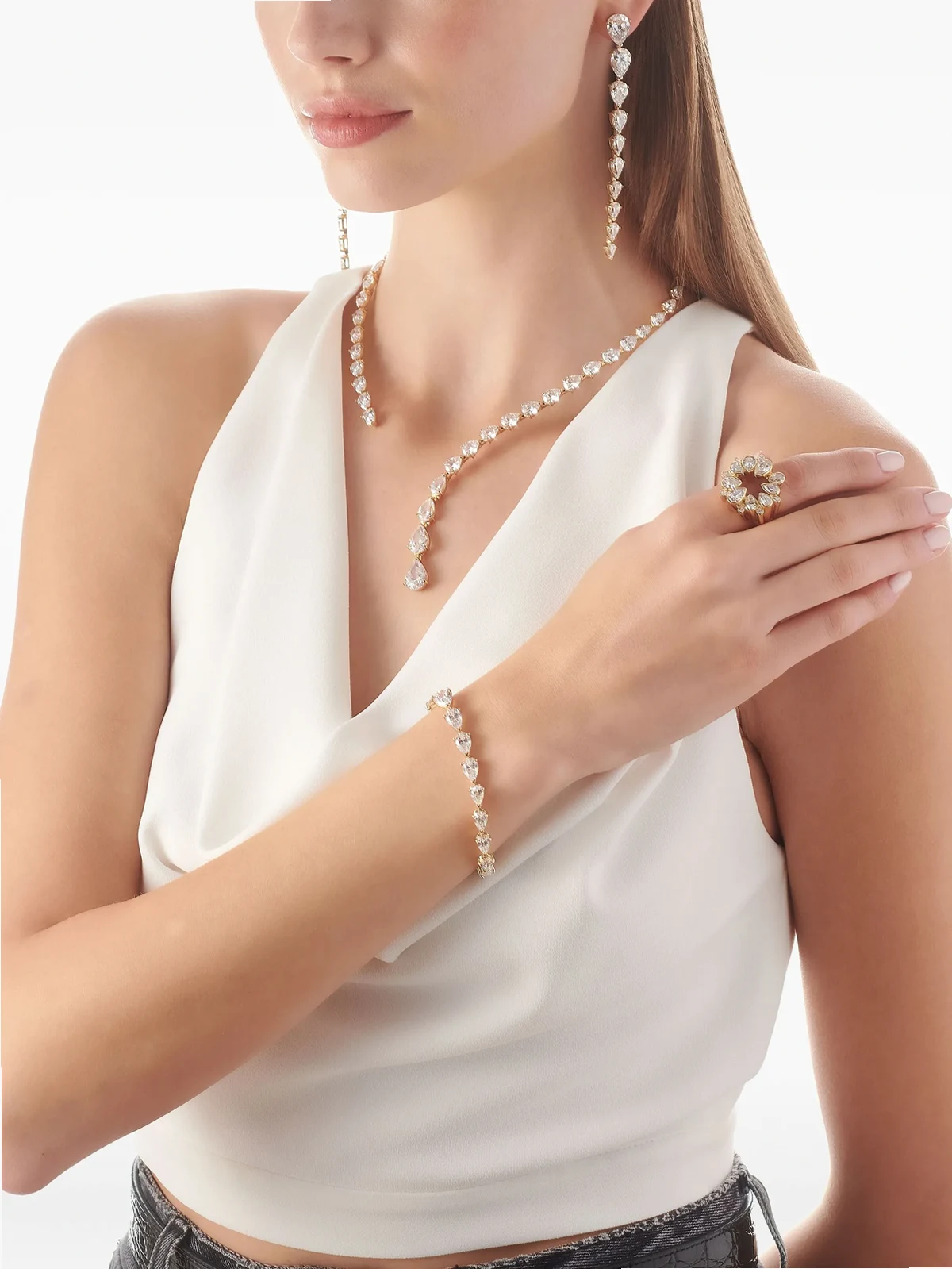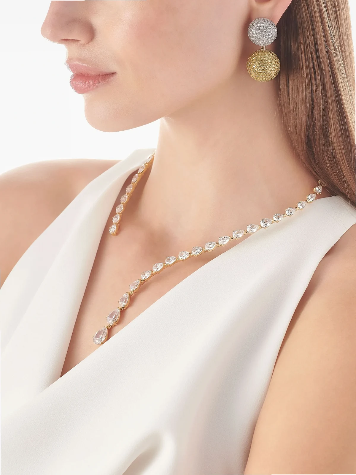 synthetische weiße Diamanten im Tropfenschliff mit Klauen-/Krappenfassung, Gesamtkaratgewicht 87,6