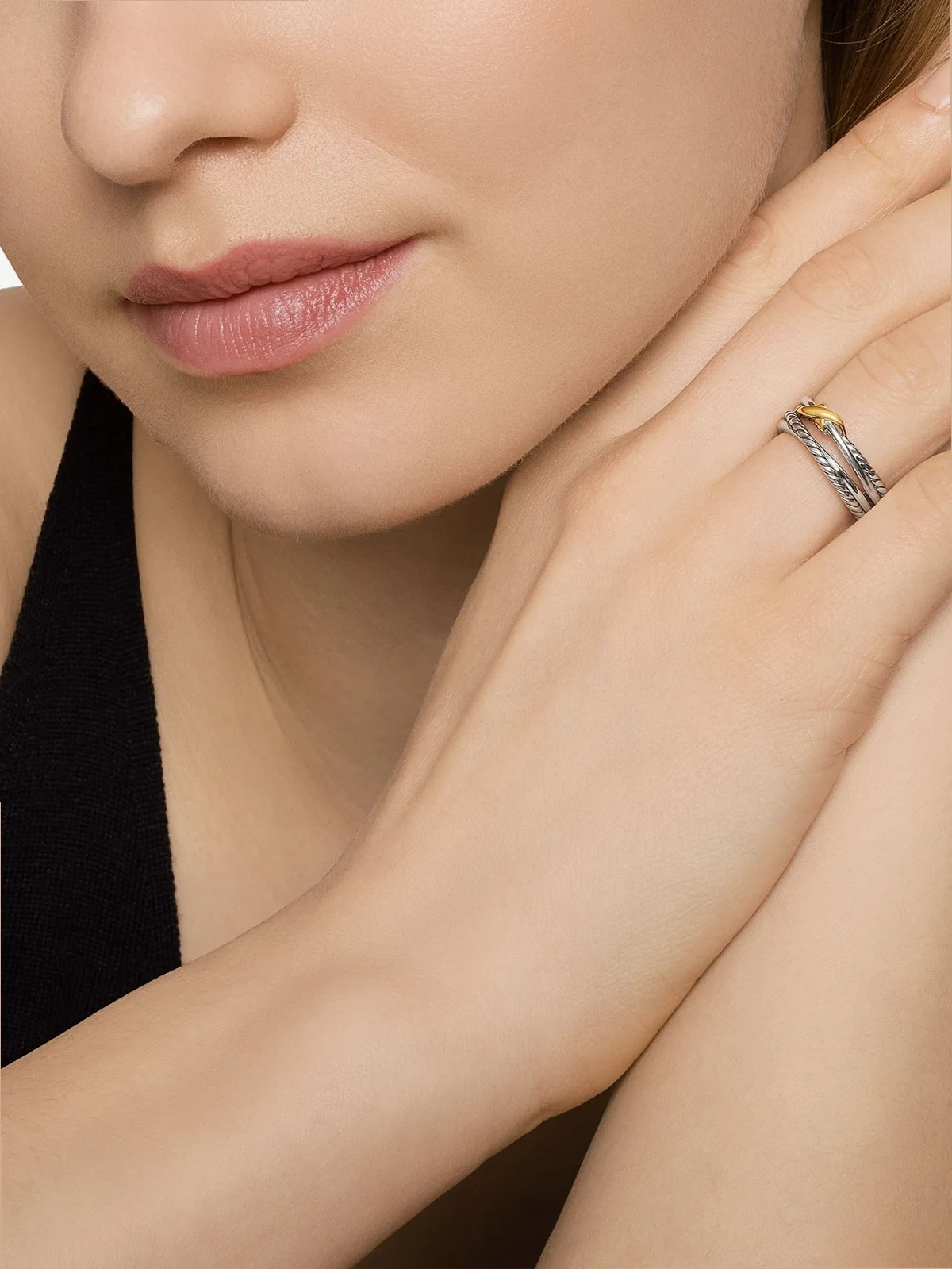 18kt X Crossover Gelbgold- und Sterlingsilberring 6mm