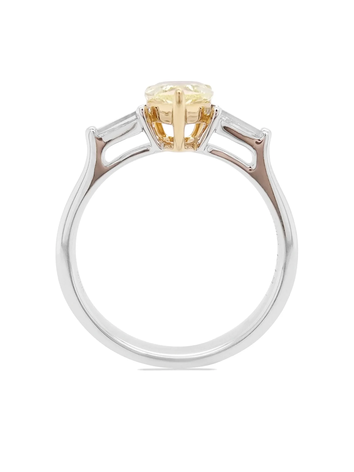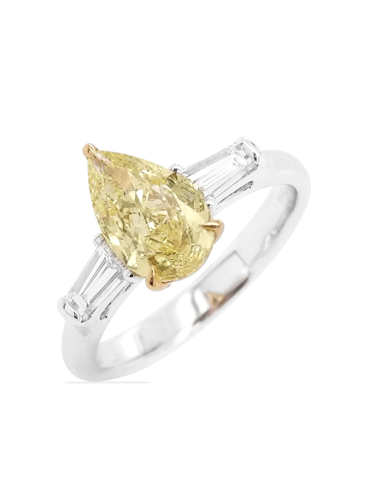 gelbe und weiße VVS2 Diamanten im Tropfen- und Smaragdschliff mit Krappen- und Zargenfassung, Gesamtkaratgewicht 1,38