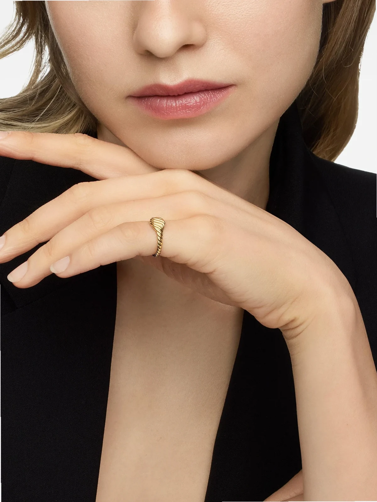 18kt Sculpted Cable Micro Pinky Gelbgoldring (7mm)