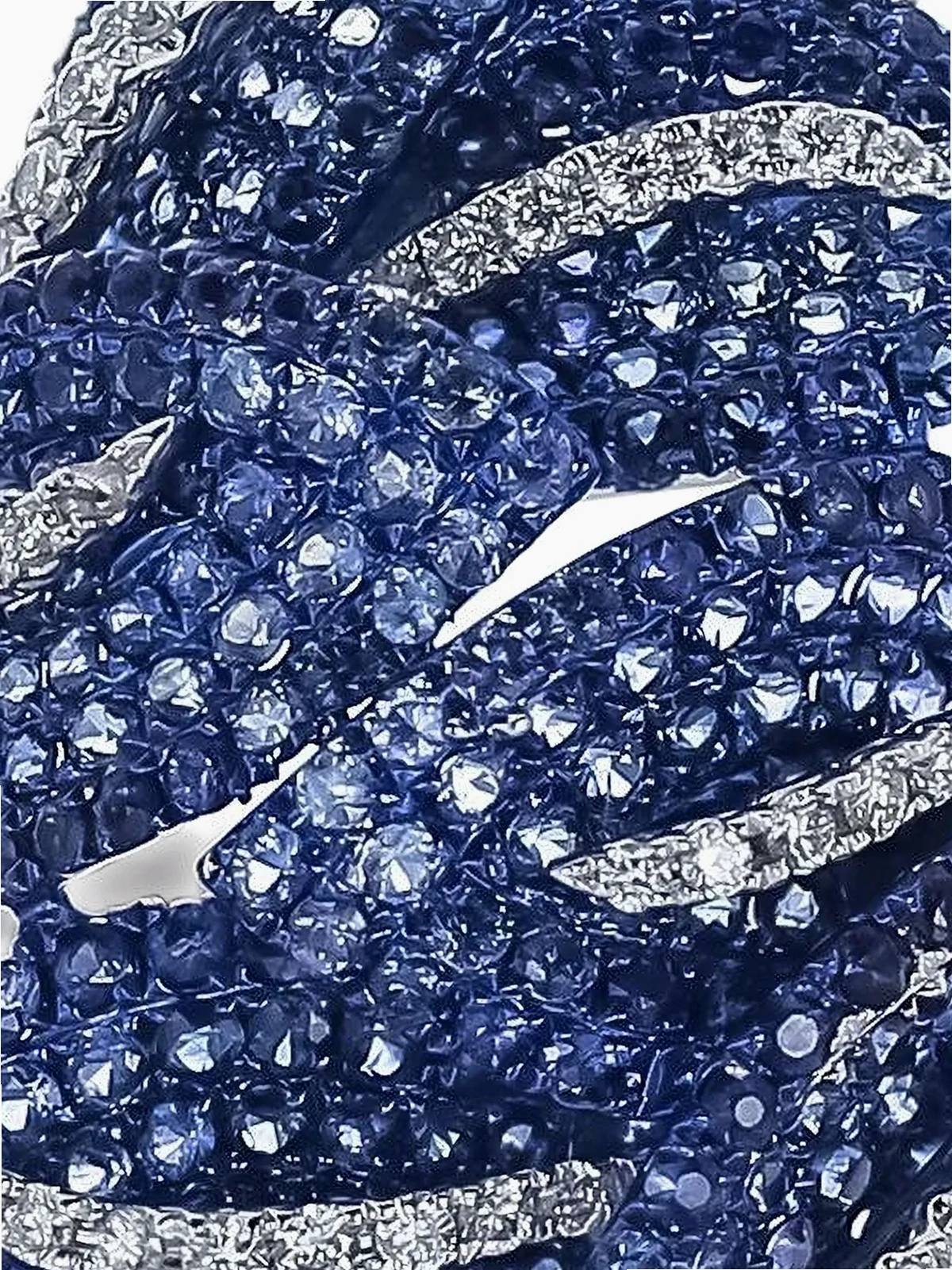 18kt Leaf Weißgoldring mit Saphir und Diamant