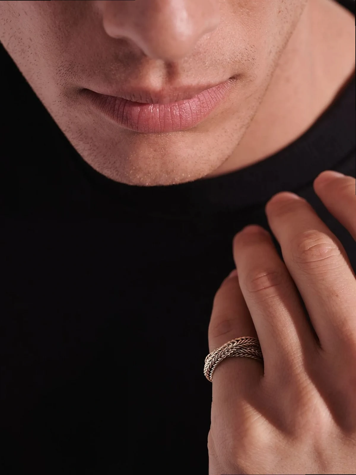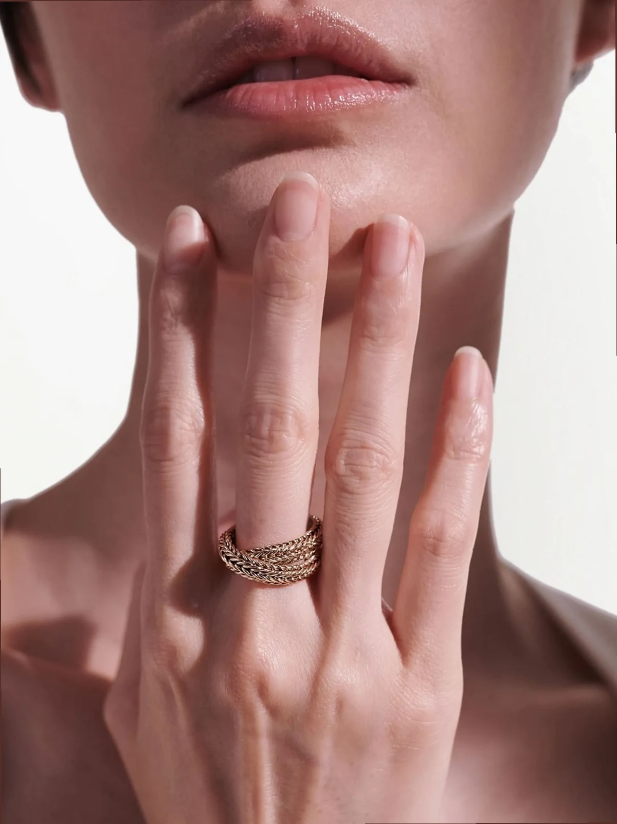 18kt Olive Branch Gelbgoldring mit Diamanten