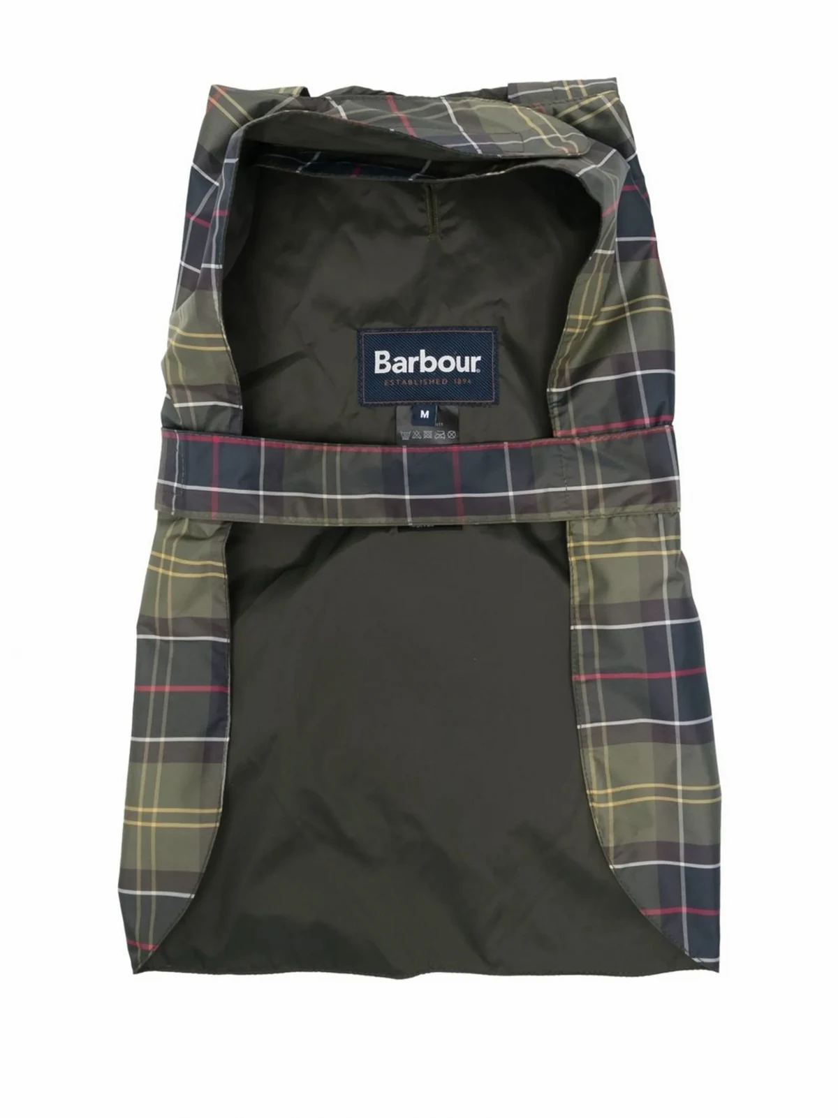 Grün, Schottenkaro, klassische Kapuze, aufgesticktes Logo hinten, Logo-Patch an der Innenseite, Klettverschluss, Beuteltasche hinten.