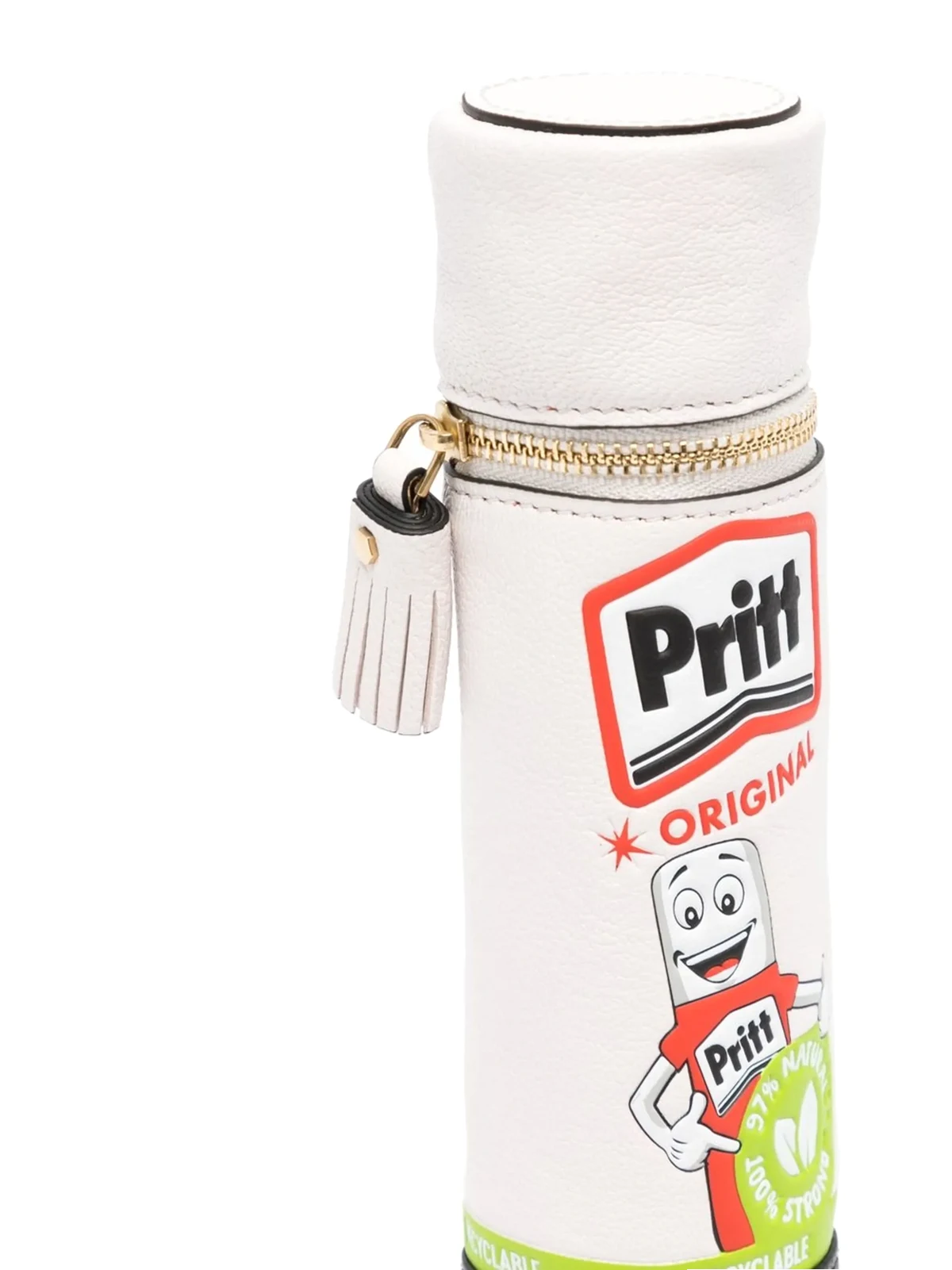 Optisches Weiß, Mehrfarbig, Nappaleder, zylindrisches Design, grafischer Print, Quasten, Rundumreißverschluss, Hauptfach.