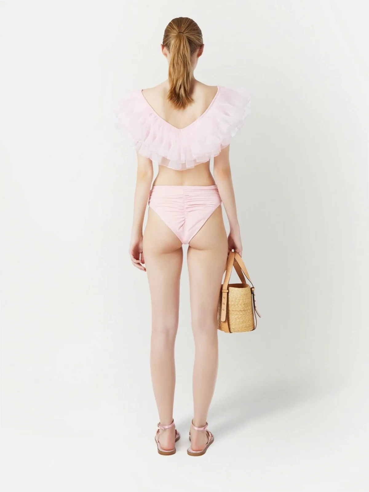 Hellpink, Rüschen, taillenhoher Schnitt. Swimwear kann nur über Ihrer eigenen Unterwäsche anprobiert werden. Taucherbrille und Schnorchel sind optional....
