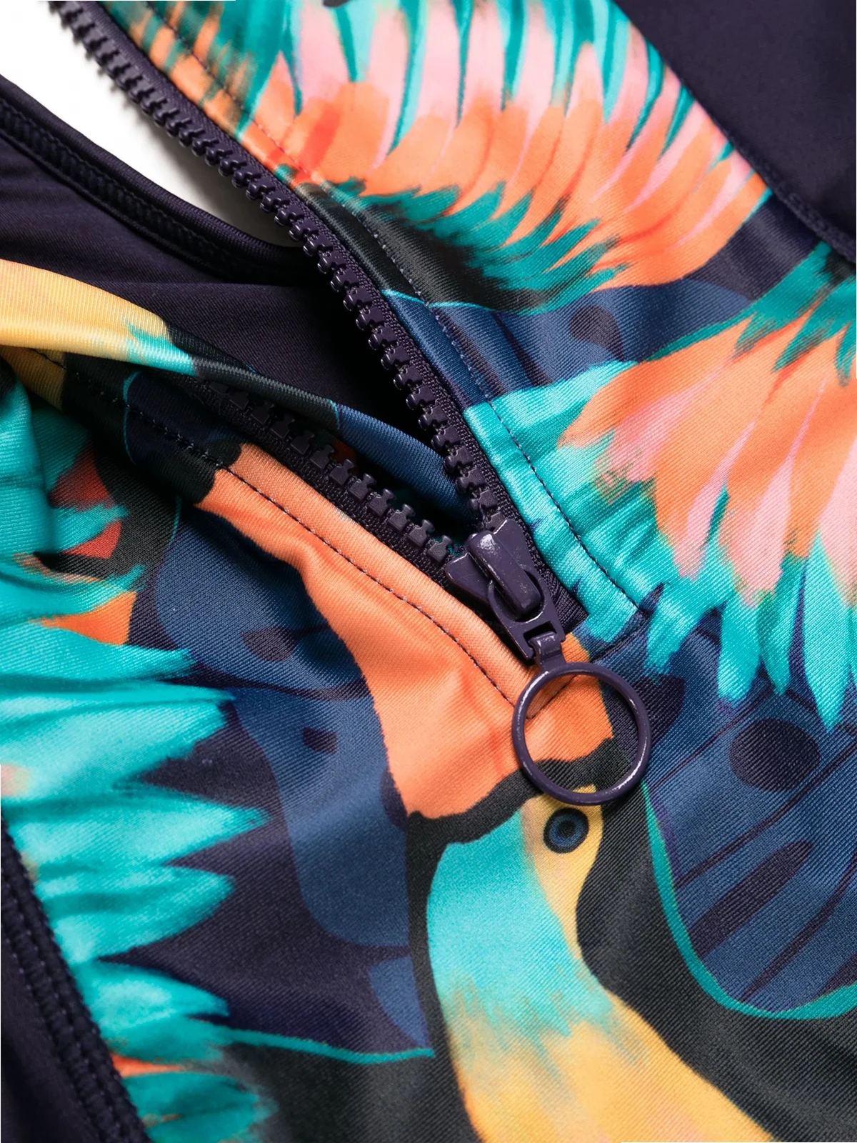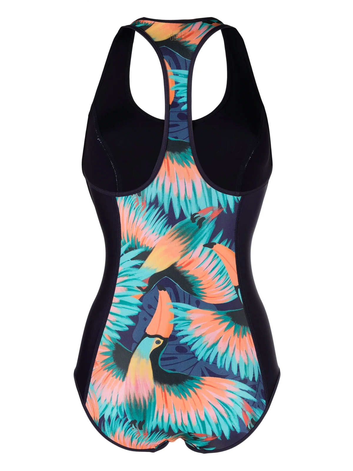 Schwarz/Bunt, Stretch-Design, Animal-Print, Logo-Print hinten, Reißverschluss vorne, ärmellos, Racerback. Swimwear kann nur über Ihrer eigenen Unterwäsche anprobiert werden. Taucherbrille und Schnorchel sind optional.... .