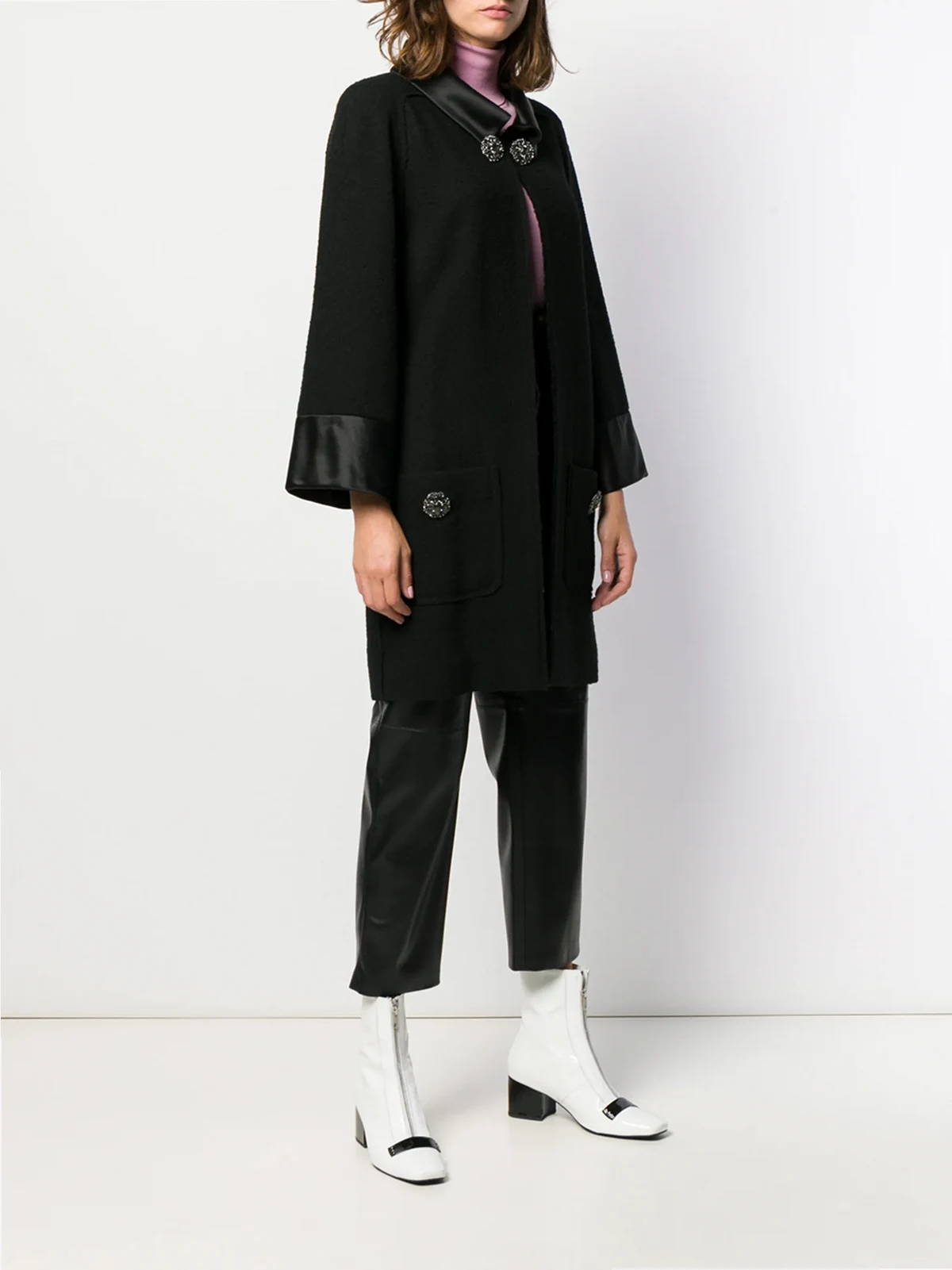 Geknöpfter Mantel von Chanel Pre-Owned. Merkmale: breiter Kragen, lange und weit geschnittene Ärmel und zwei Vordertaschen. Bitte beachten Sie, dass dieser pre-owned Artikel nicht neu ist und deshalb kleine Imperfektionen aufweisen kann.