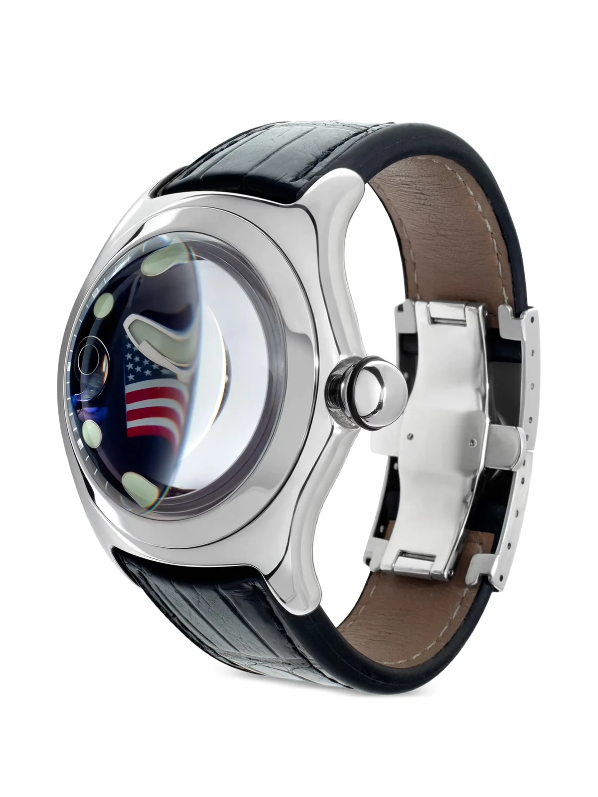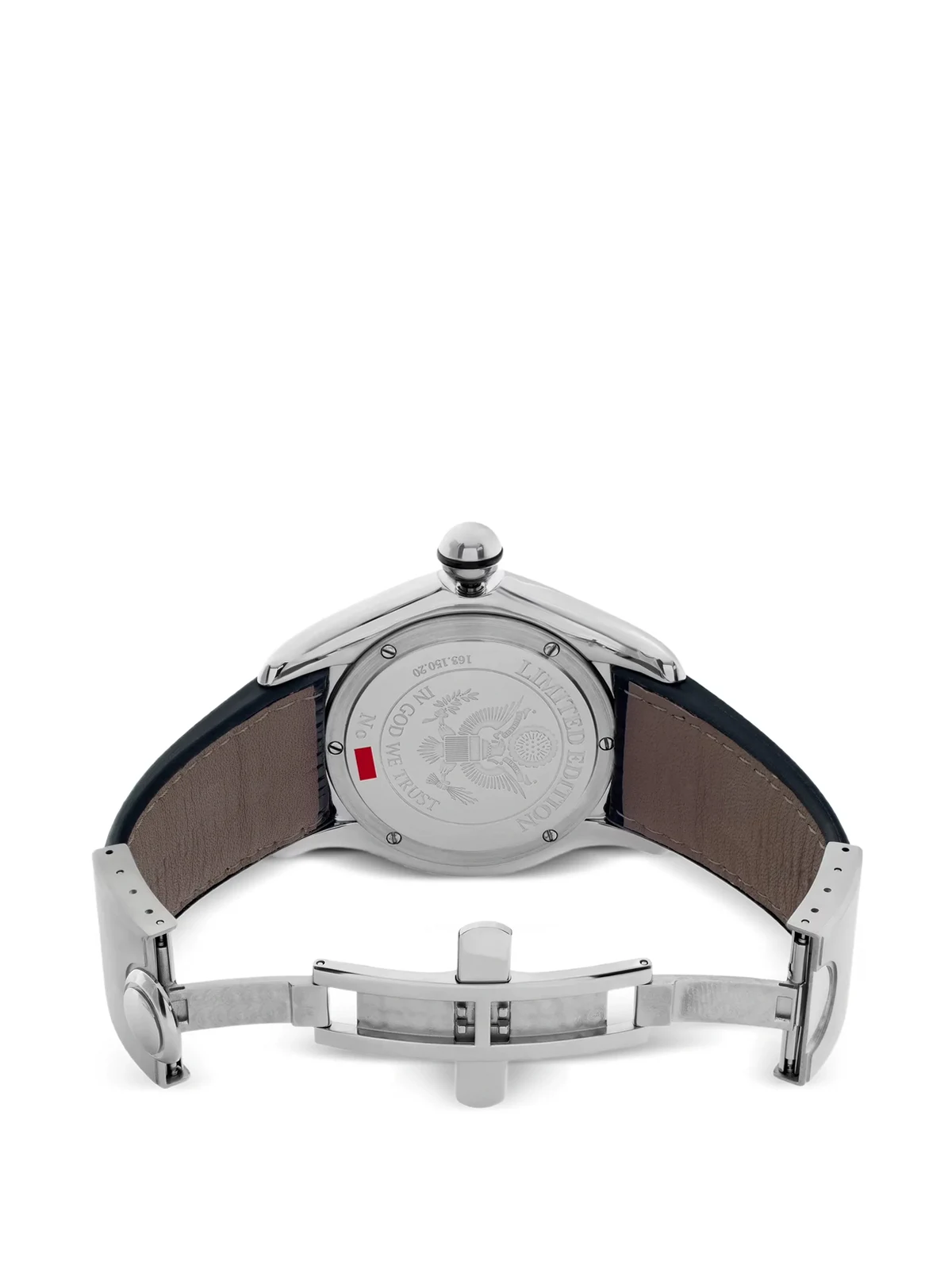 Edelstahl 100%, Alligatorleder 100%, Glas 100%