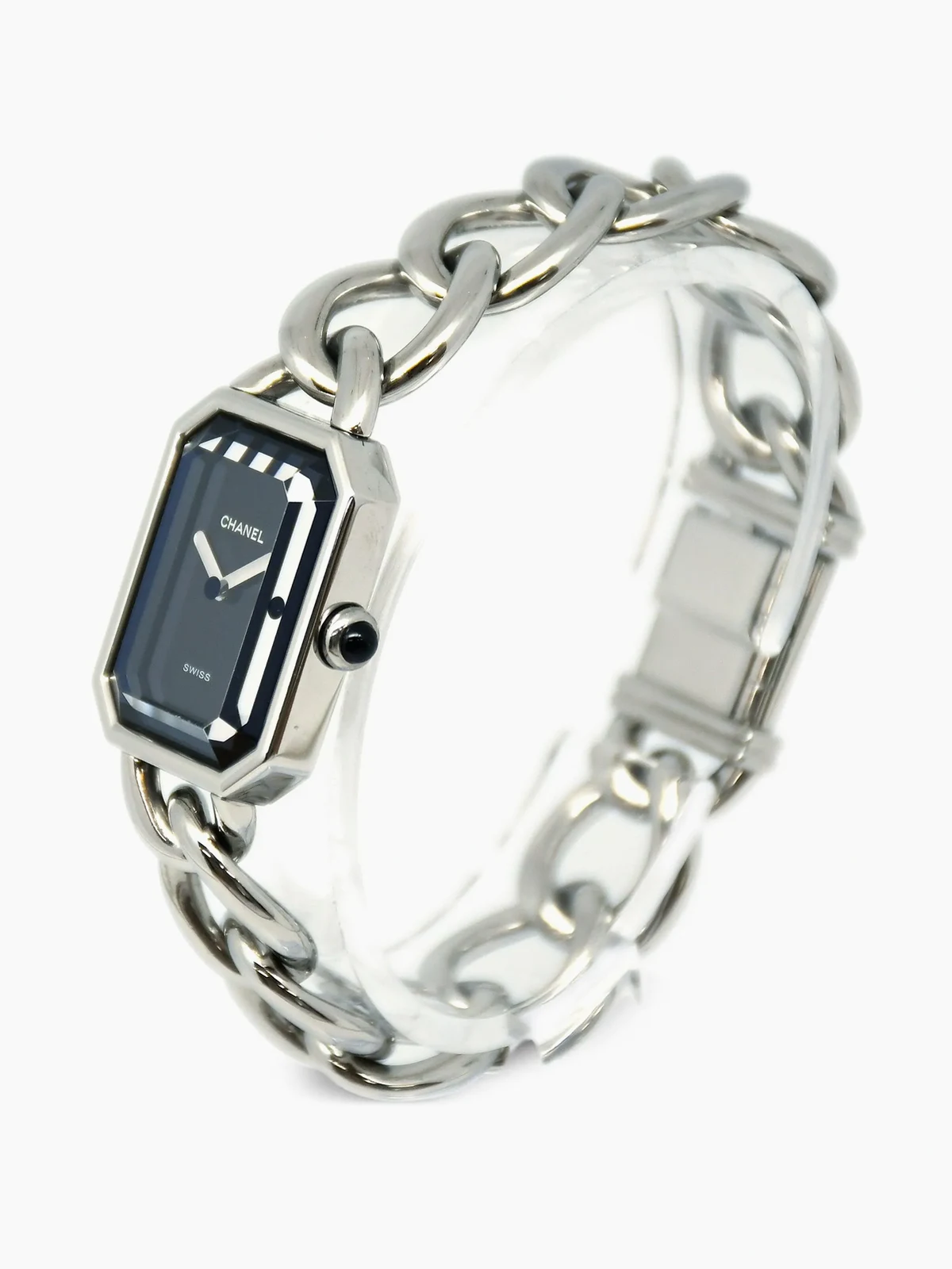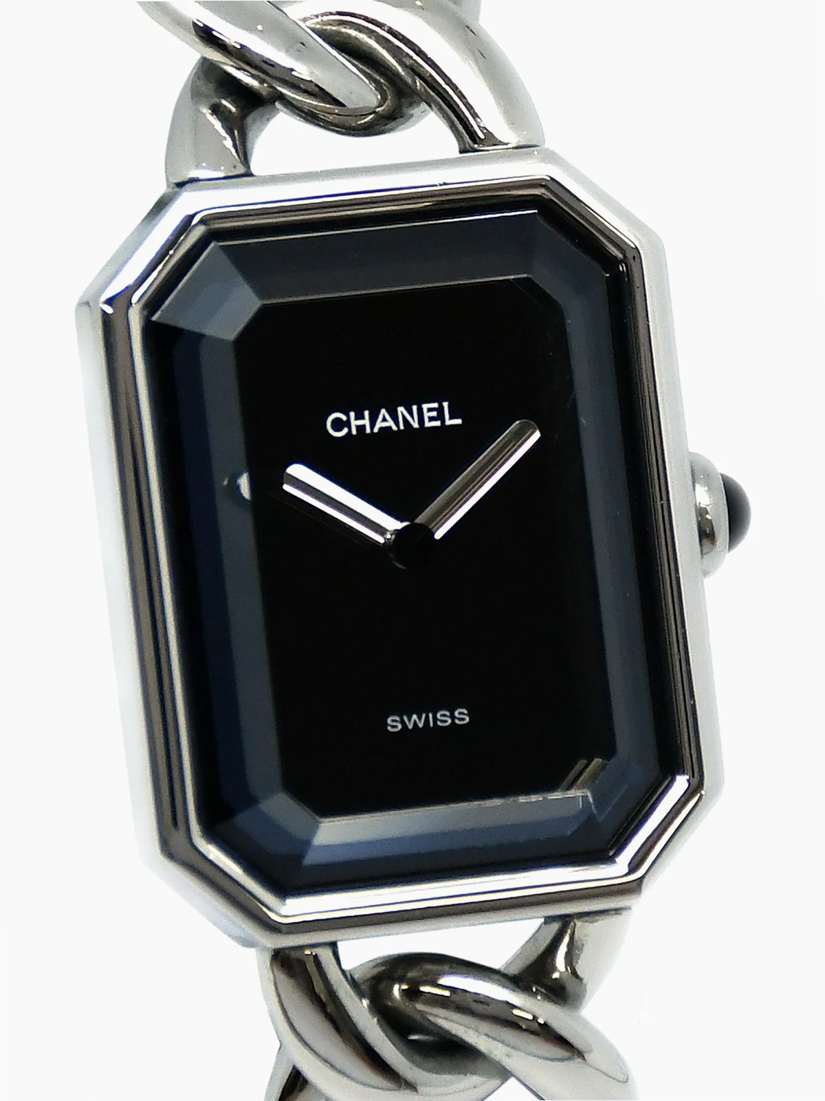 Schwarz, achteckiges Zifferblatt, Edelstahlgehäuse, Edelstahlarmband, Mineralglas, Baton-Zeiger, Quarzwerk, Krone mit Cabochon, Spangenverschluss. Zustand: GUT. Dieser Artikel ist in gutem Zustand, mit minimalen Gebrauchsspuren, z. B. an Material oder Beschichtungen, Kratzer, usw. . .