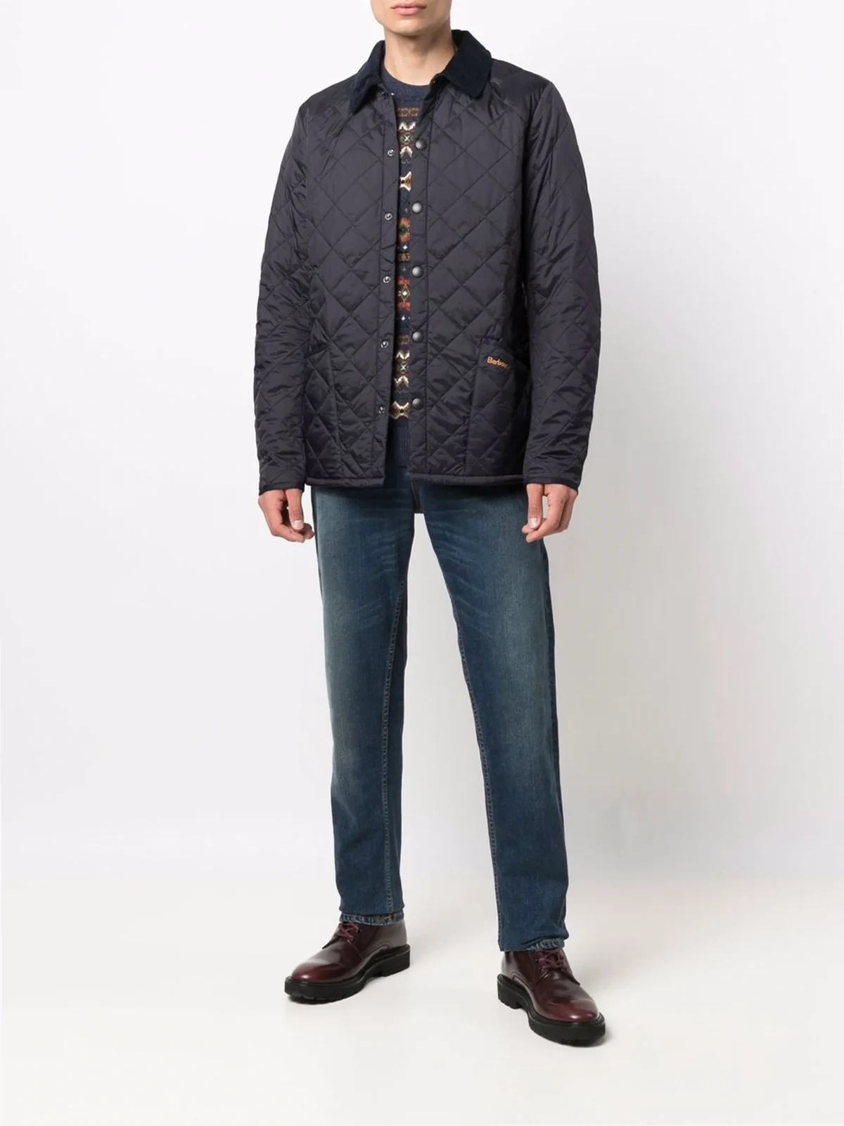 Klassischer Kragen, Knopfverschluss vorne, gestepptes Finnish, lange Ärmel, zwei Beuteltaschen vorne, gerader Saum. Material: Baumwolle.