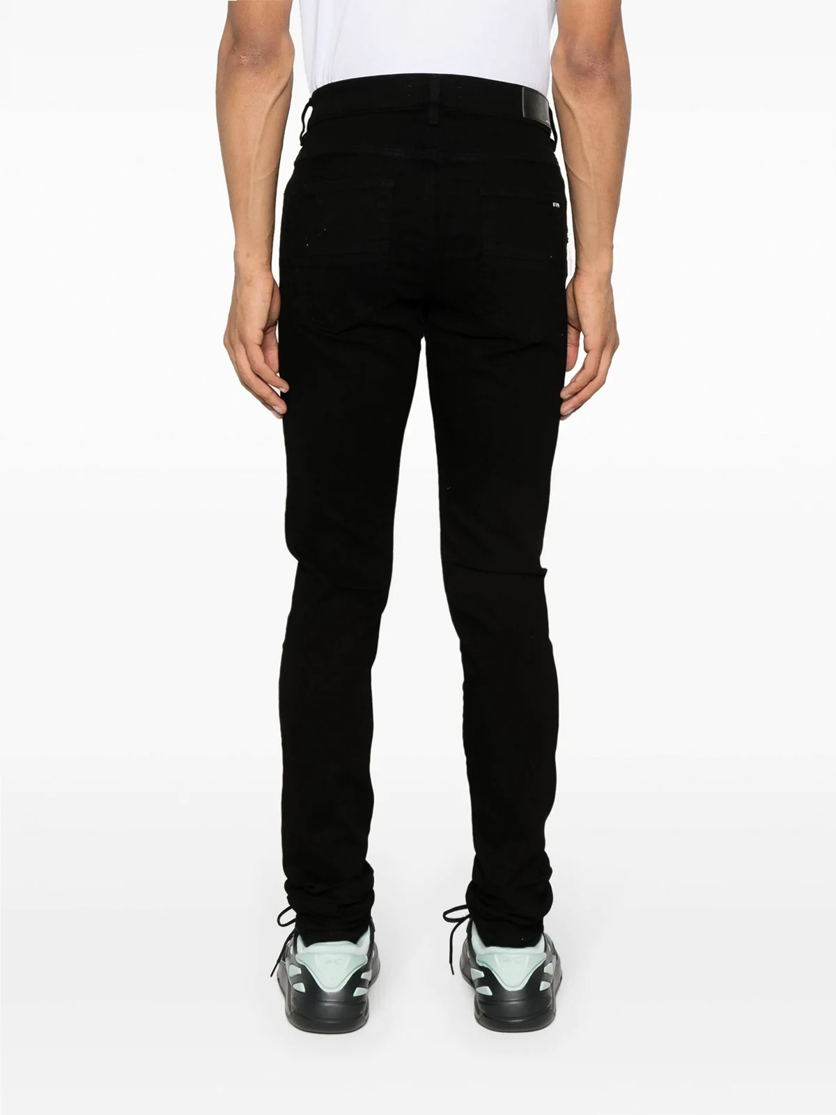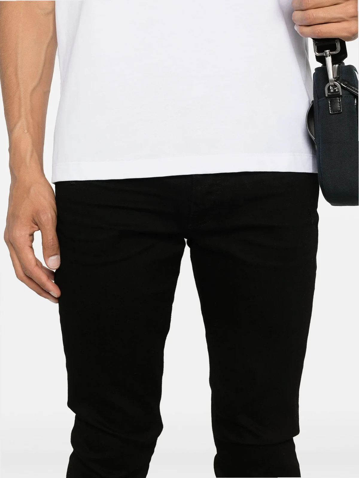 silberfarbenes Logo-Schild hintenSkinny-Fit