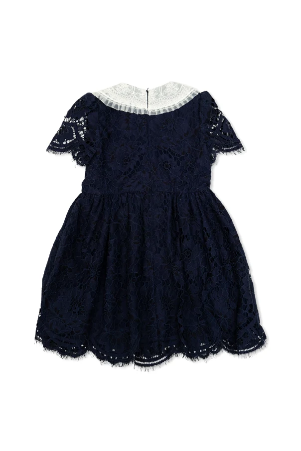 Spitzenkleid der Marke Self-Portrait Kids ist eine raffinierte Wahl für Liebhaber zeitloser Eleganz. Der ausgestellte Schnitt mit Taillennaht betont die Silhouette auf harmonische Weise, während die zarten kurzen Ärmel dem Look Leichtigkeit verleihen. Dichter, kunstvoll gearbeiteter Spitzenstoff mit reichhaltiger Blumenstickerei bildet das herausragende Element dieses Modells und unterstreicht dessen exklusiven Charakter.