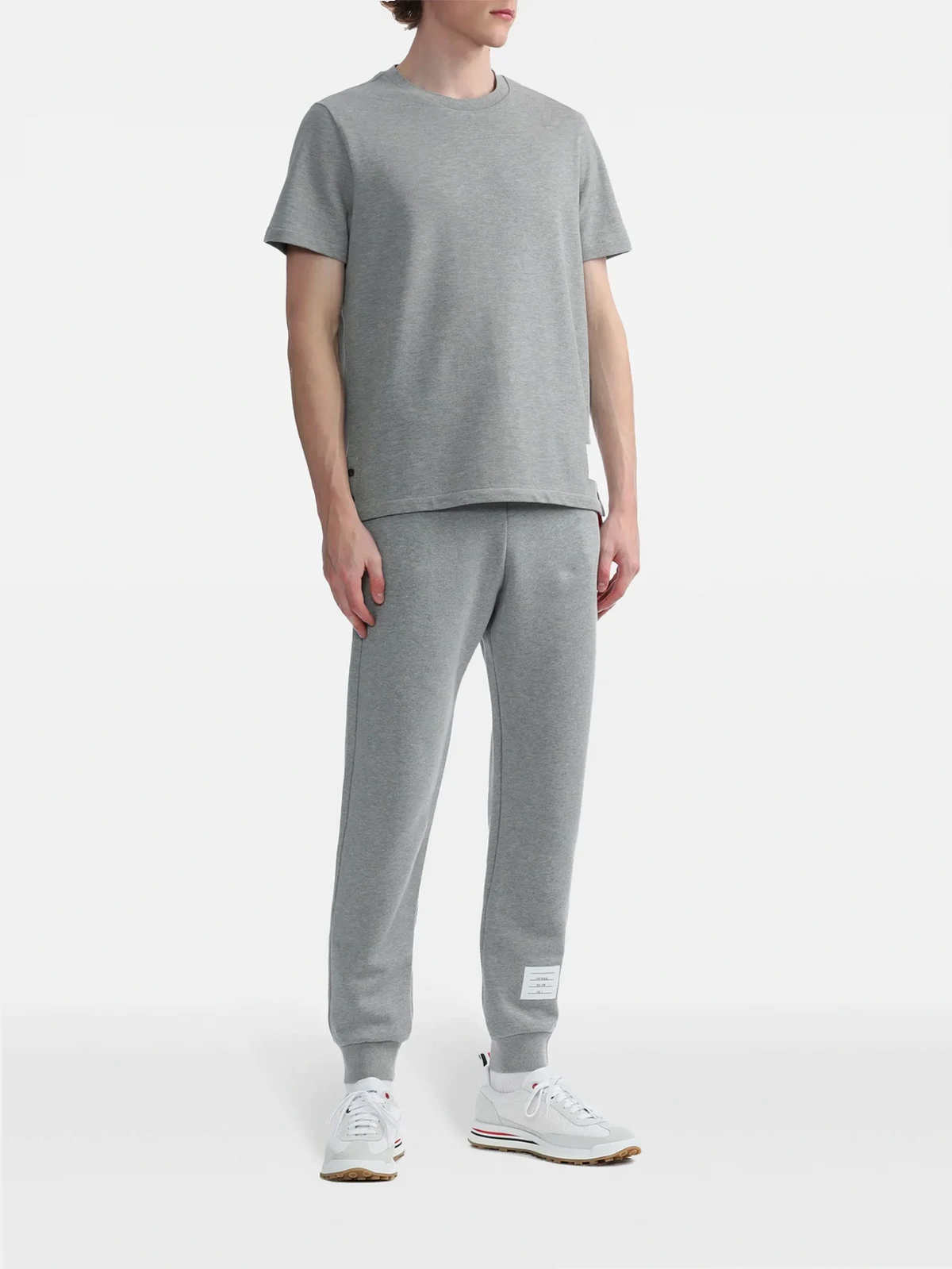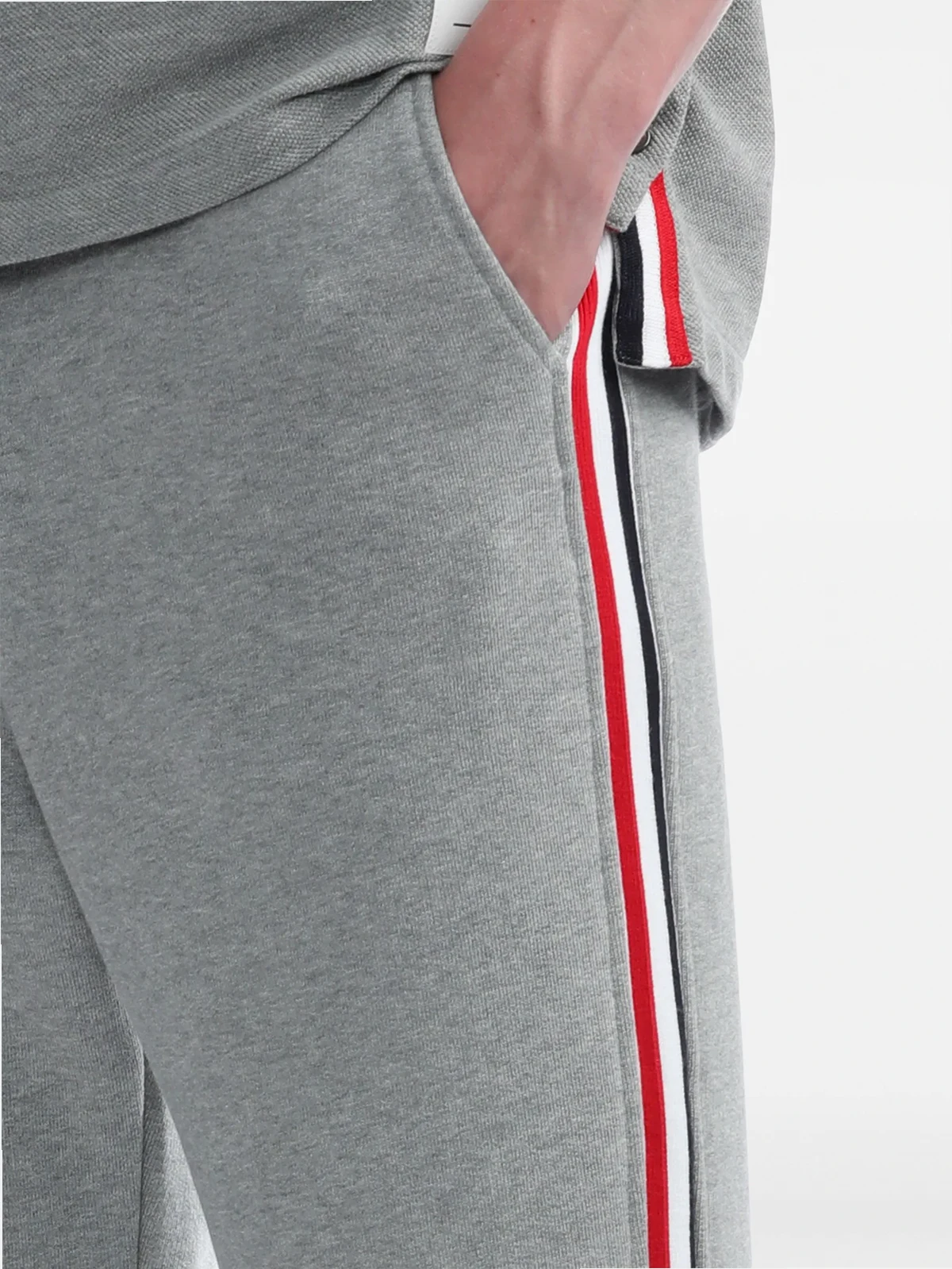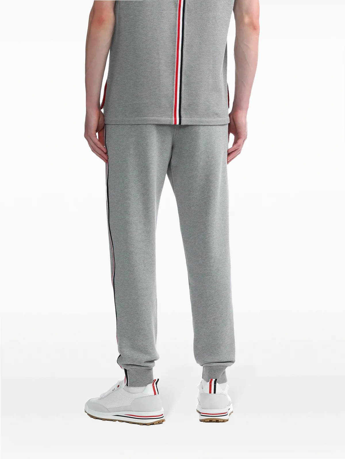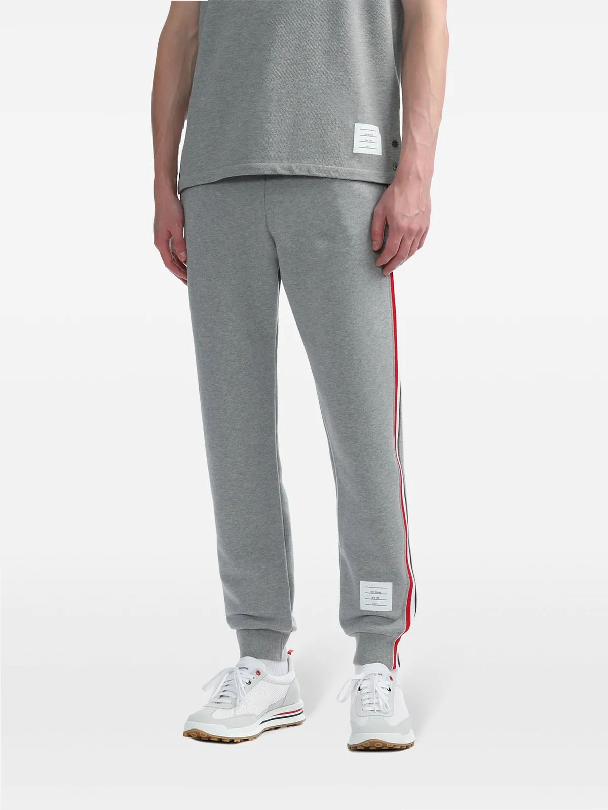 Jogginghose mit Streifen aus Baumwolle von Thom Browne. Merkmale: Taillenzug, seitliche Taschen, Logo-Detail, Logo-Patch vorne und Raffung am Knöchel.