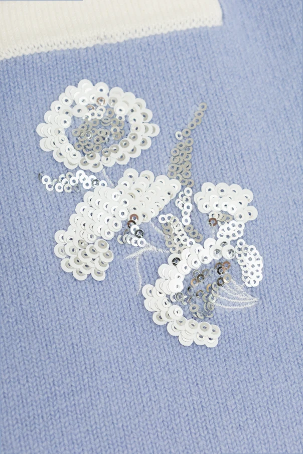 Der Rock wird aus weichem, gestricktem Stoff mit Pullover-Strickmuster gefertigt, der für außergewöhnlichen Tragekomfort und einen makellosen Look sorgt. Besonderen Ausdruck verleihen ihm die schimmernden, floralen Pailletten-Applikationen – in Weiß und Silber gehalten, unterstreichen sie den wahrhaft exklusiven Charakter dieses Modells. Ein kontrastierender weißer Einsatz am oberen Rand harmoniert perfekt mit der Detailvielfalt und betont die Einzigartigkeit des Produkts.