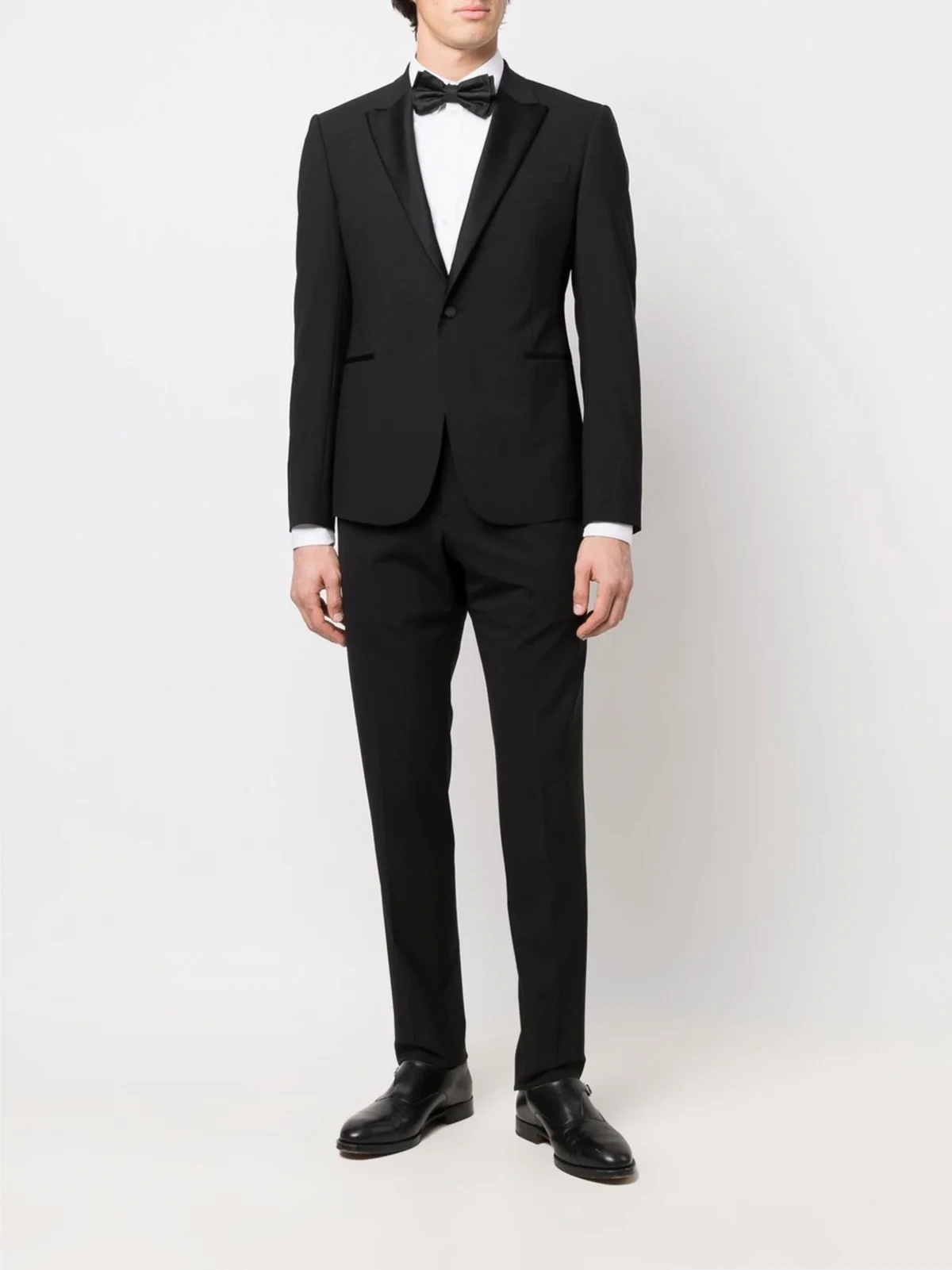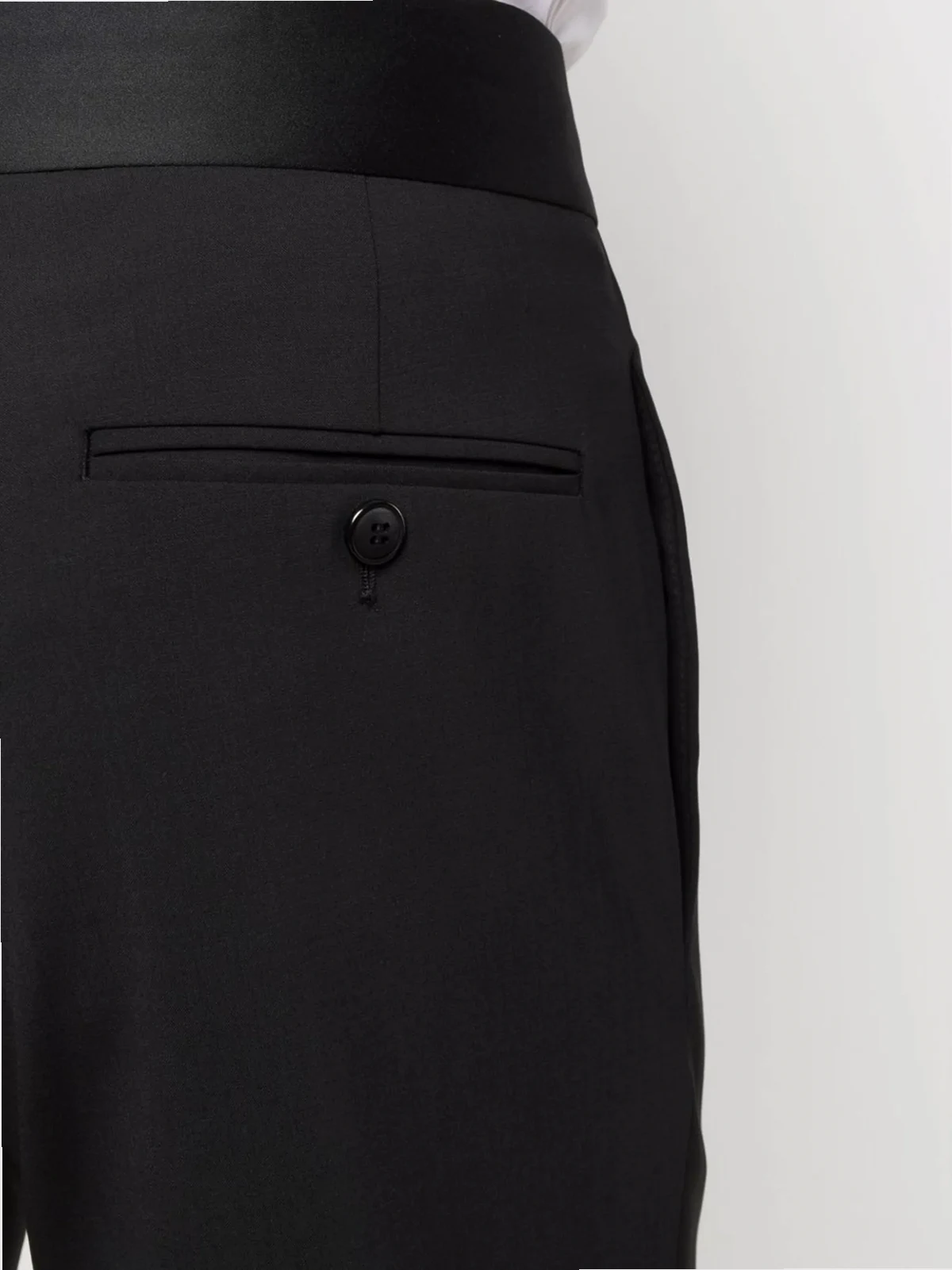 Knopfverschluss vorne, lange Ärmel, aufgesetzte Vordertasche, zwei Eingrifftaschen vorne, abgerundeter Saum, gerades Bein, zwei eingefasste Gesäßtaschen, Knopf- und Reißverschluss vorne. Farbe: Schwarz.