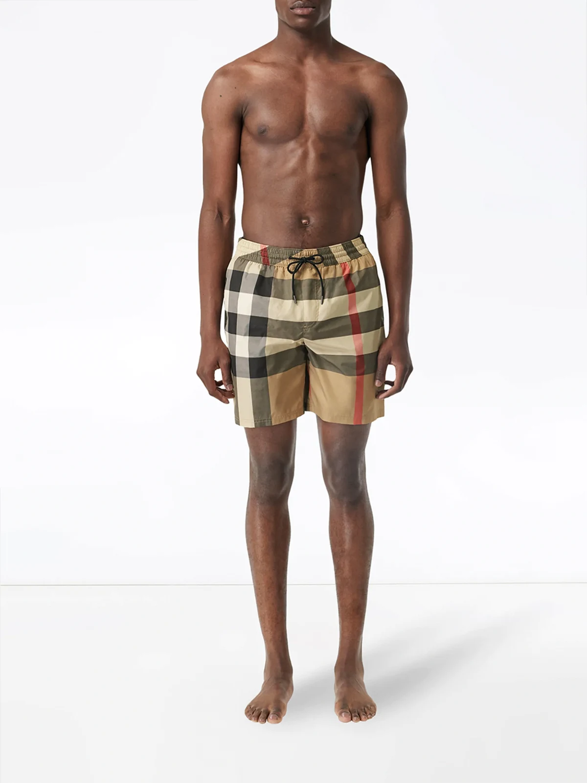 Karierte Badeshorts von Burberry. Merkmale: elastischer Bund mit Kordelzug, verdeckter Verschluss vorne, kariert und seitliche Eingriffstaschen.
