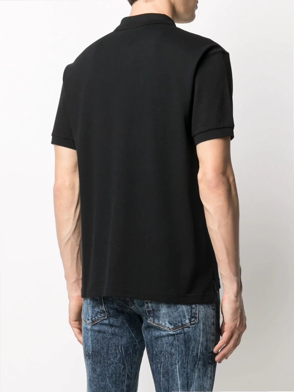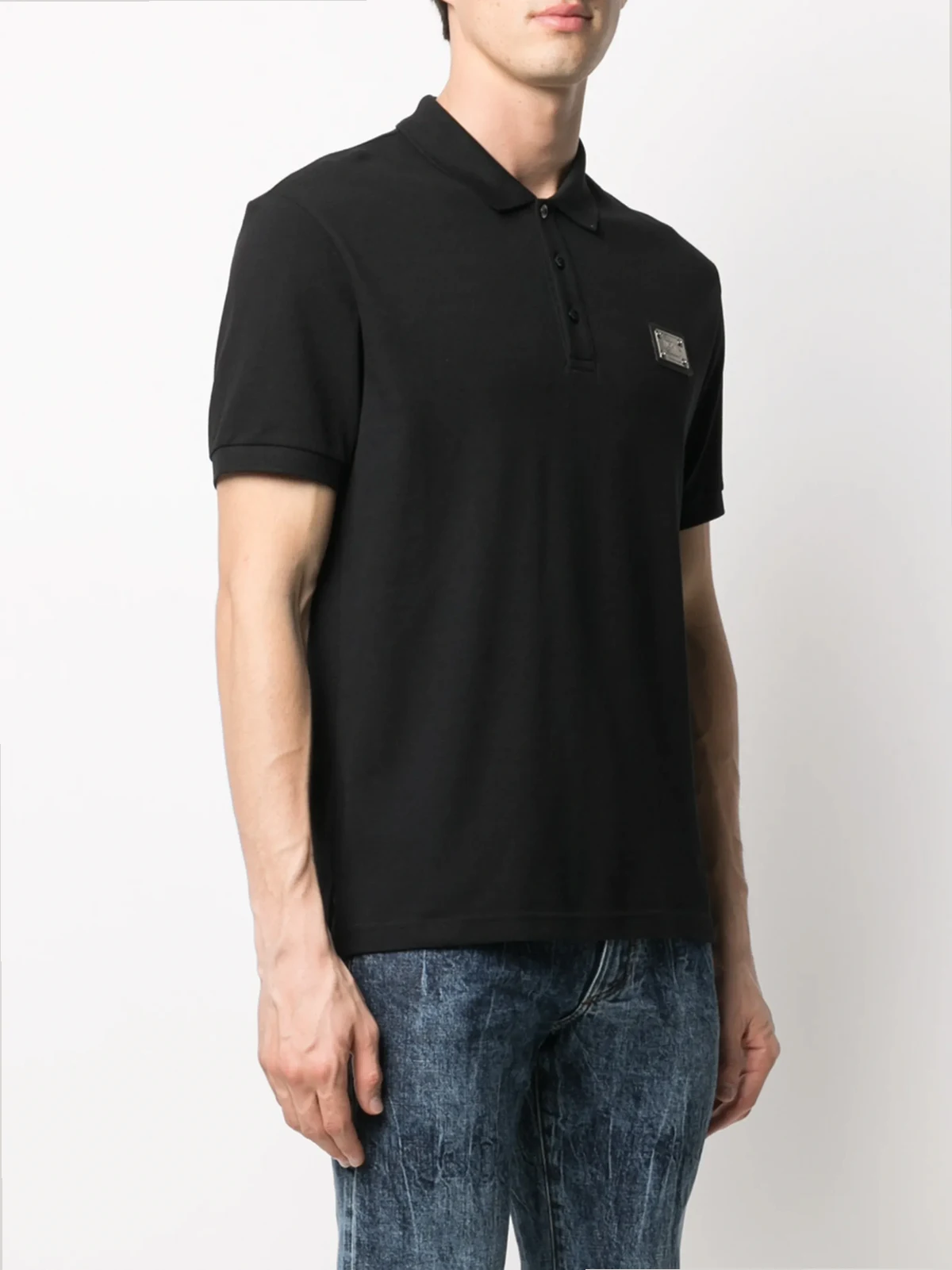 Knopfverschluss vorne, Strickjersey, gerader Saum, seitliche Schlitze, kurze Ärmel. Farbe: Schwarz. Material: Baumwolle.