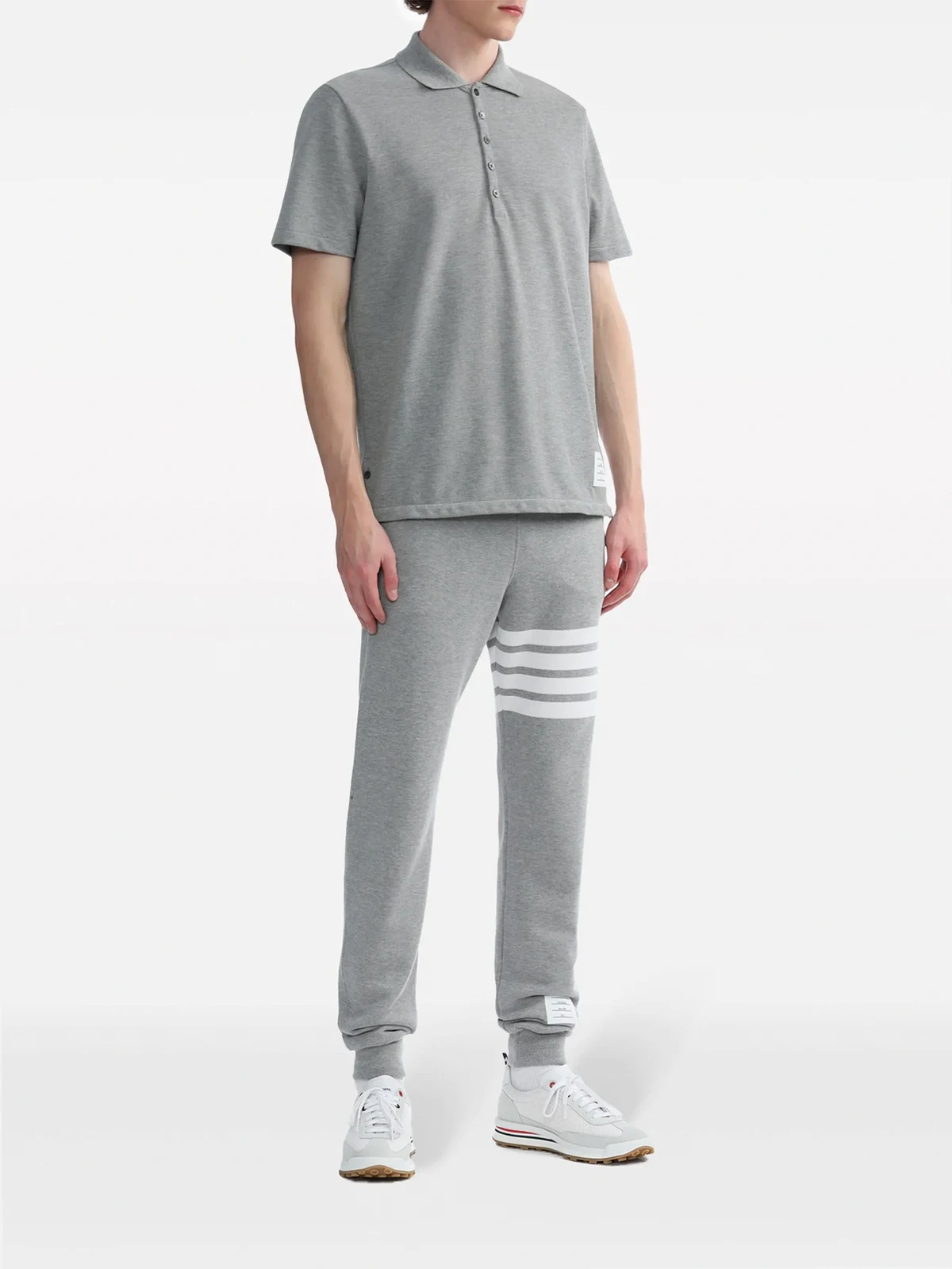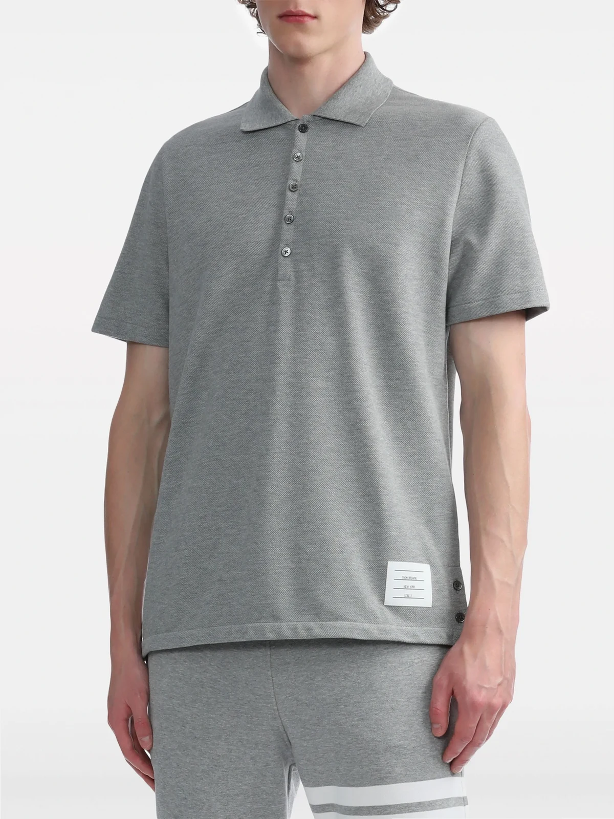 Hellgraues Poloshirt mit Knöpfen aus Baumwolle von Thom Browne.