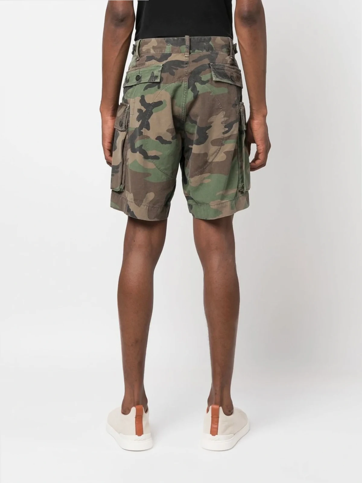 Khaki, Braun, Camouflage-Print, Knopfverschluss, Gürtelschlaufen, zwei seitliche Eingrifftaschen, zwei eingefasste Gesäßtaschen.