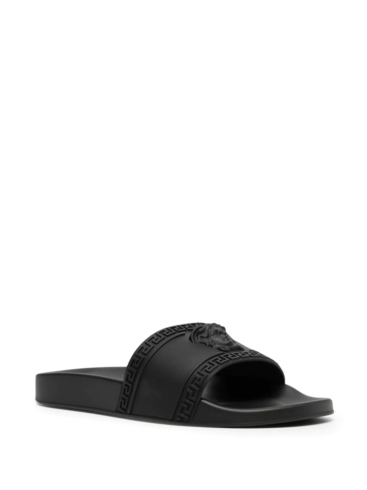 Medusenkopf, ikonischer La Greca-Print, ohne Verschluss, zehenfrei, flache Sohle.