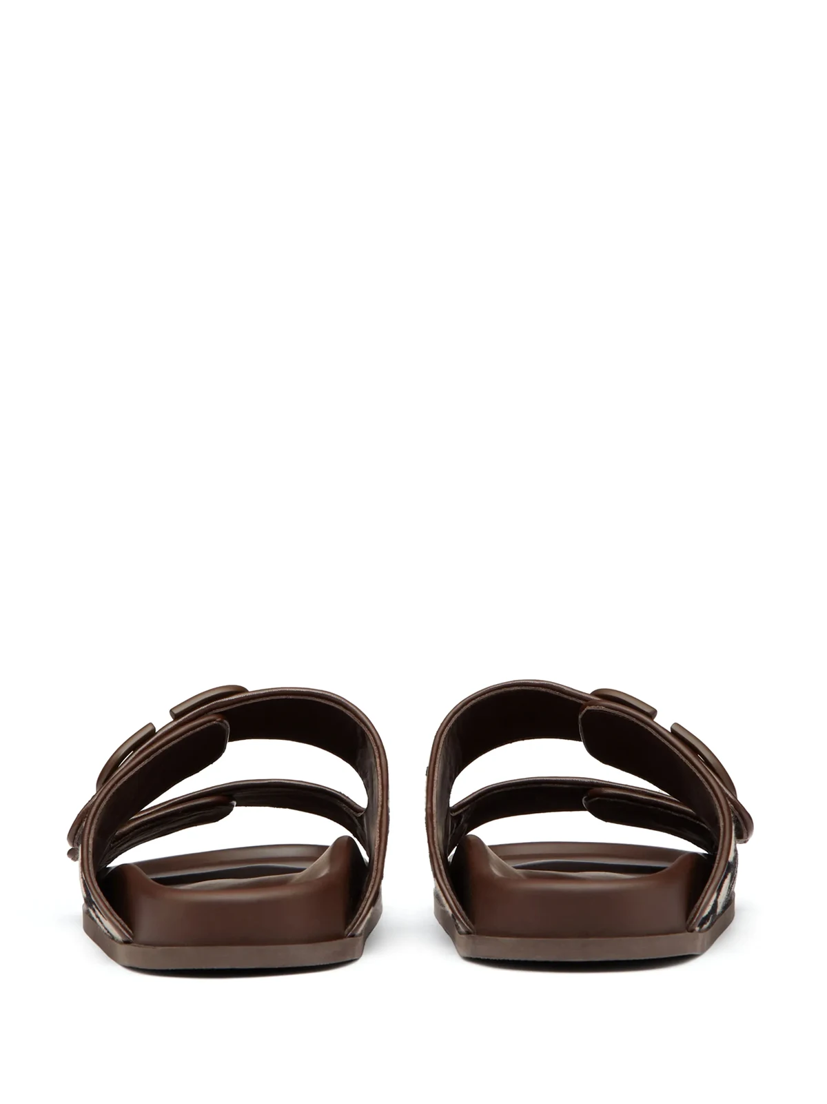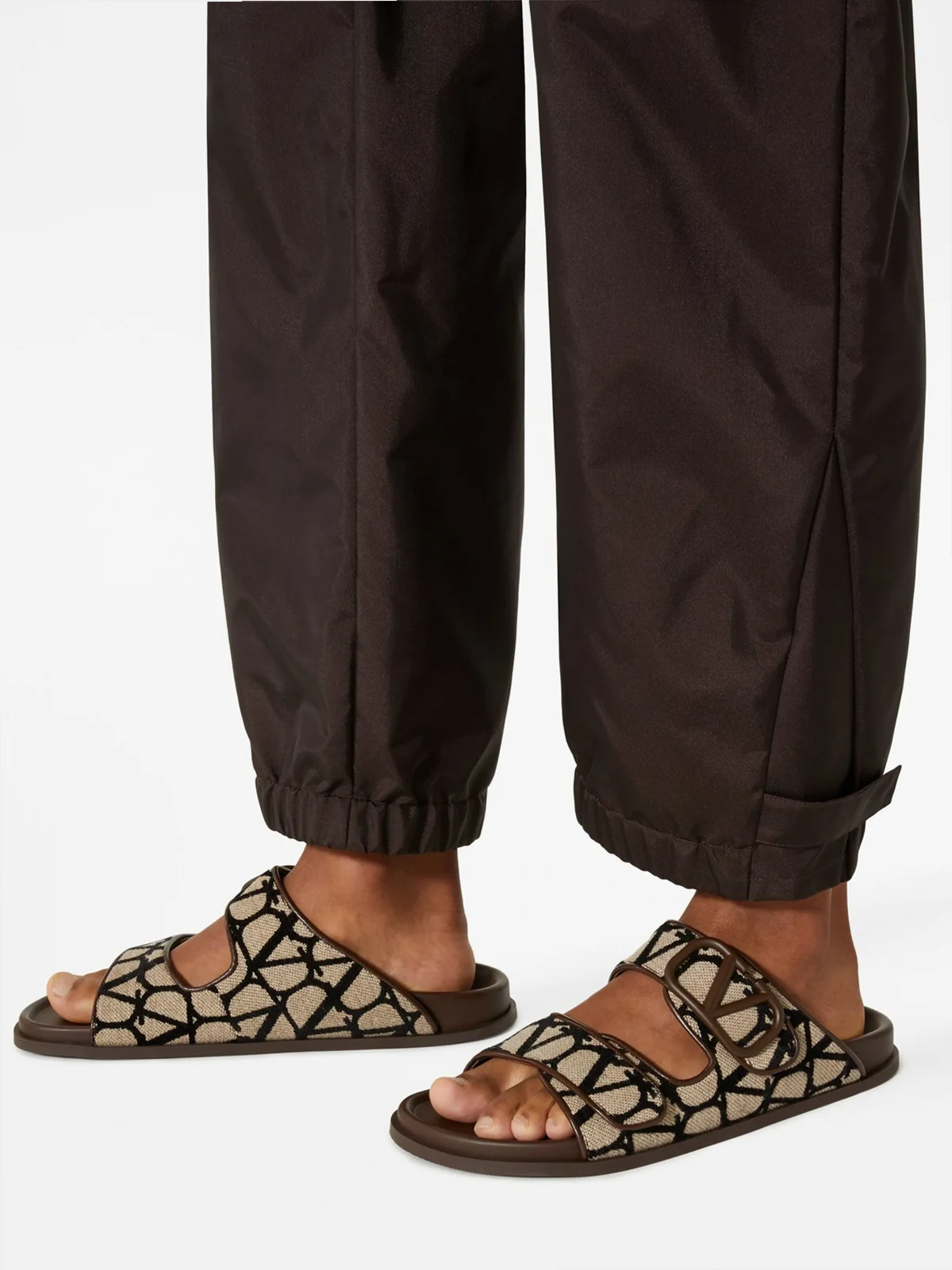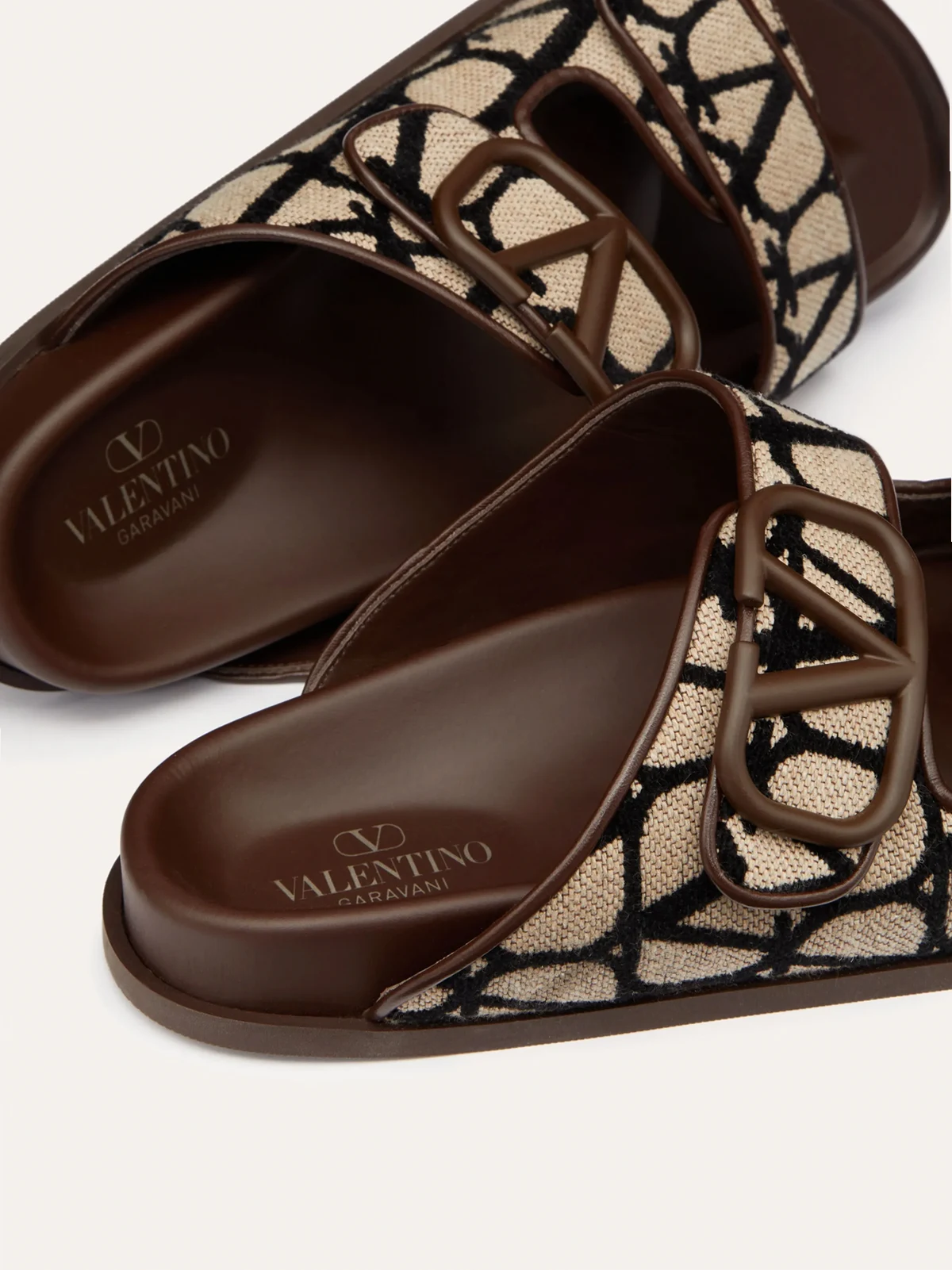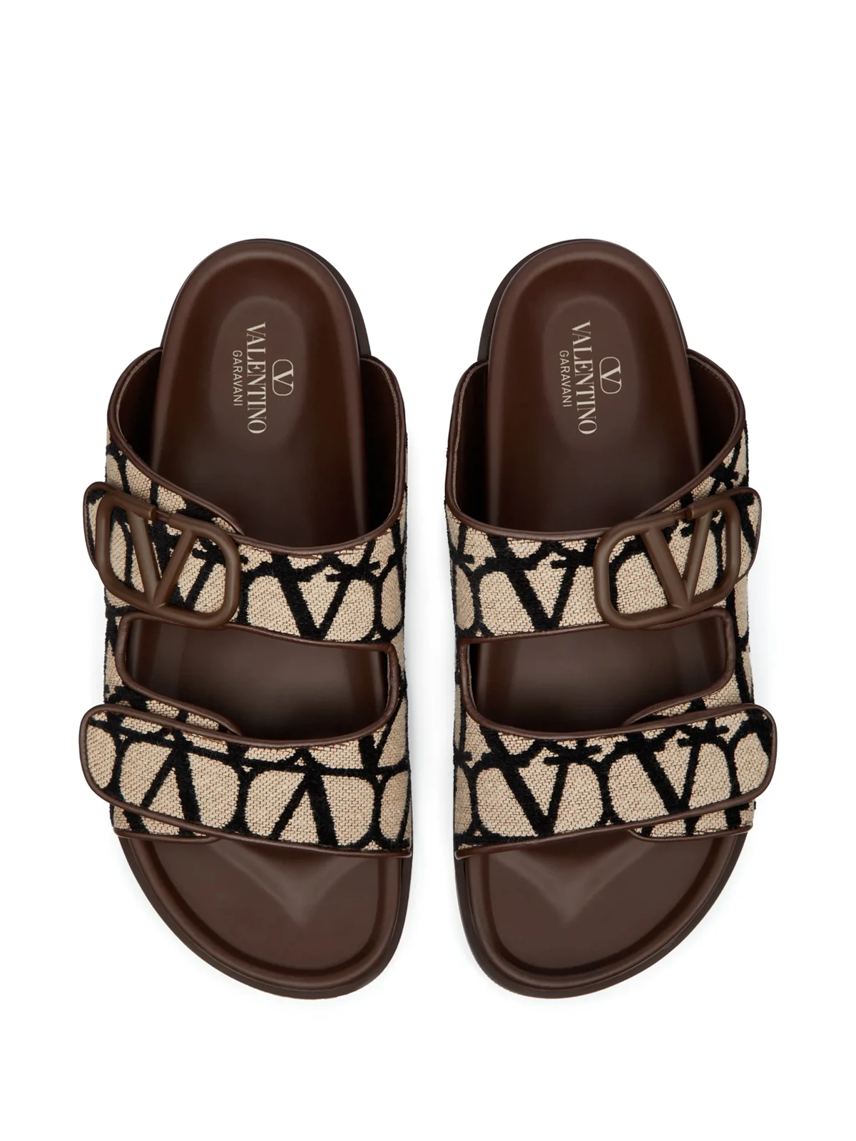 Schokobraun, Lammleder, VLogo-Detail, Monogrammmuster, Klettverschluss vorne, ohne Verschluss, zehenfrei, flache Gummisohle.