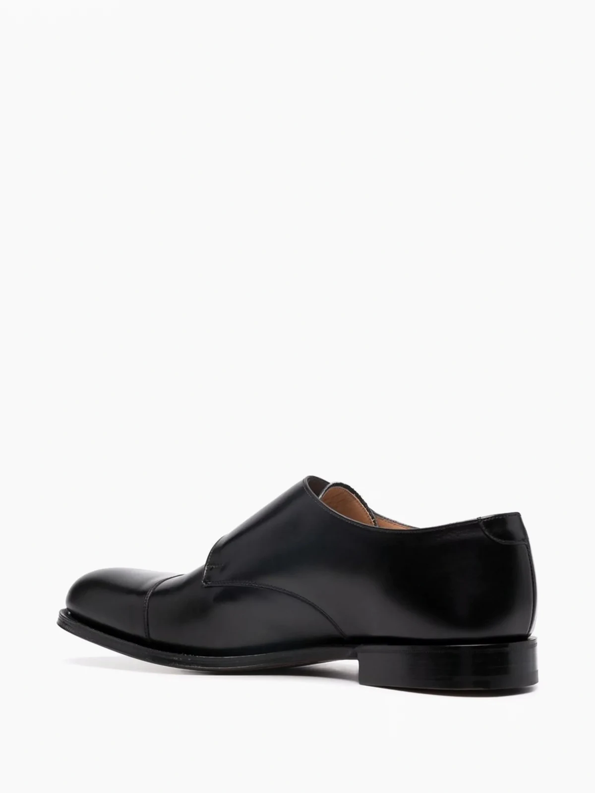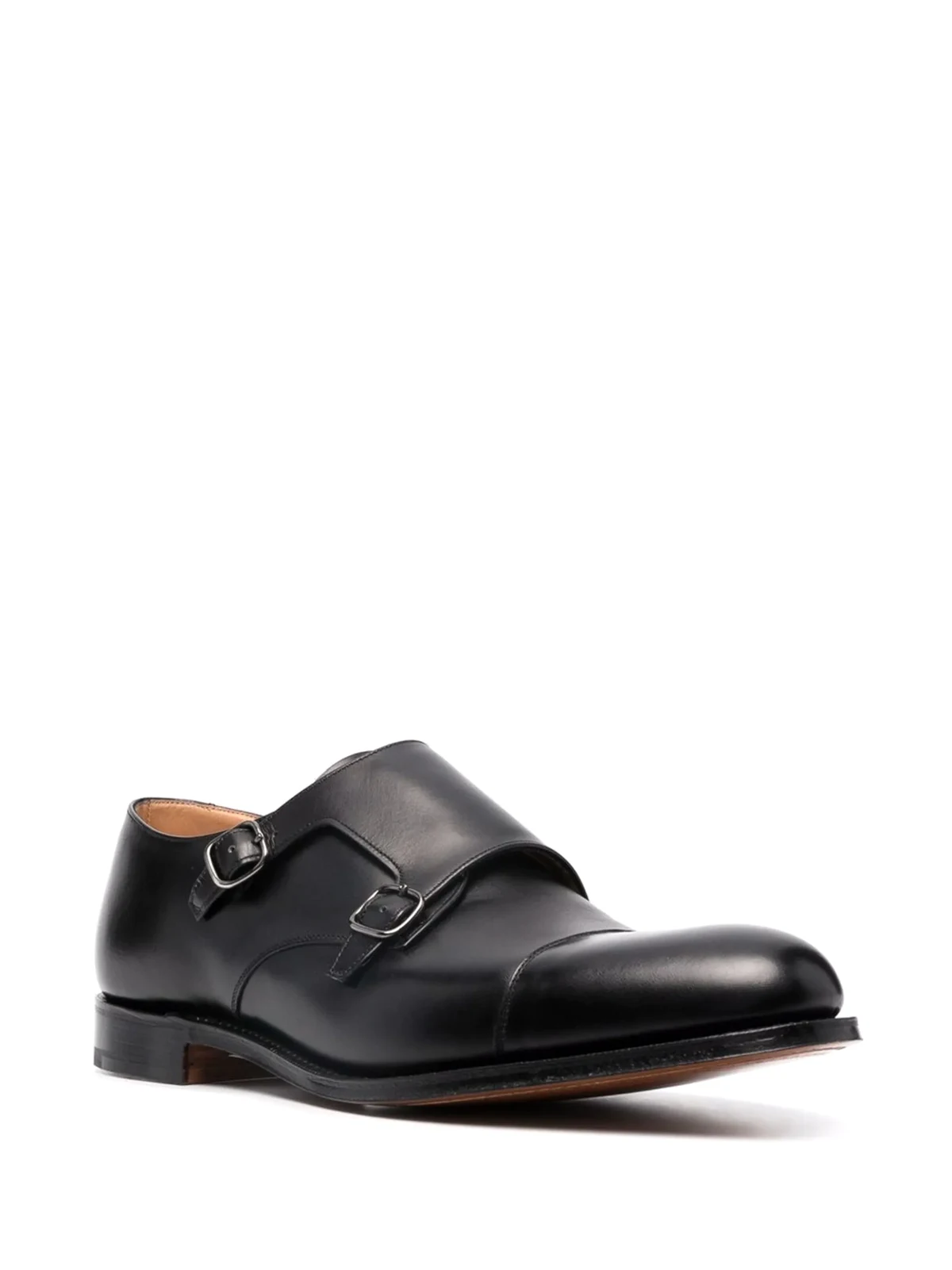 Mandelförmige Kappe, Monk-Schnalle, gleichfarbige Nähte, Ledersohle, Logo-Prägung im Fußbett, Sohle mit Logo. Farbe: Schwarz. Material: Leder.