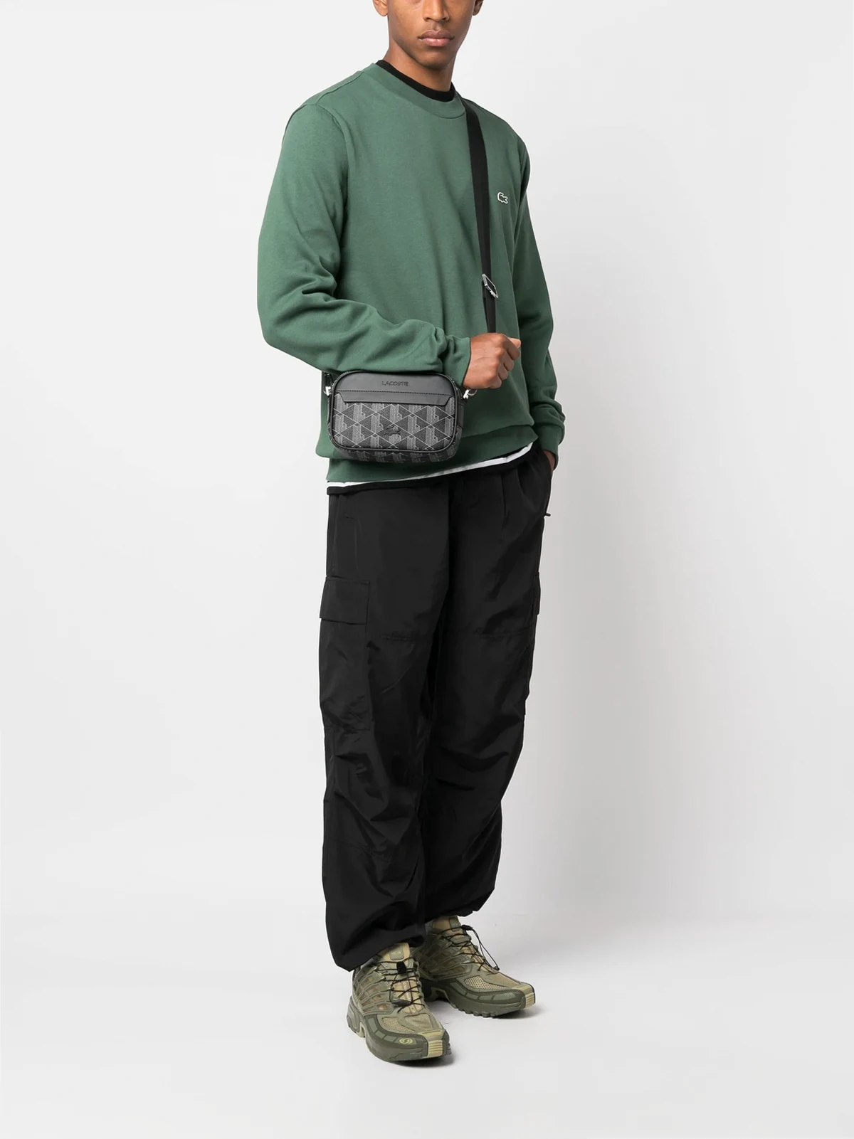 Monogrammmuster, Logo-Patch vorne, Logo-Prägung vorne, Reißverschluss oben, Eingrifftaschen innen, abnehmbarer und verstellbarer Schulterriemen.