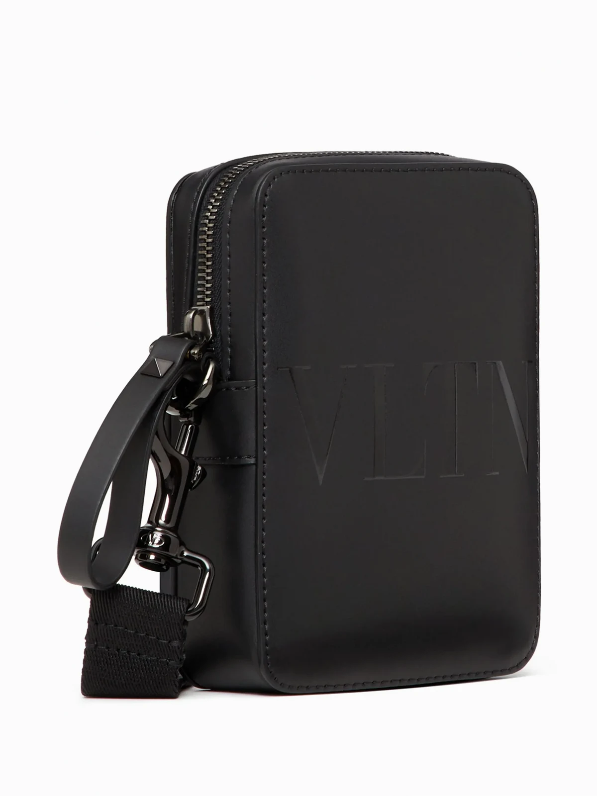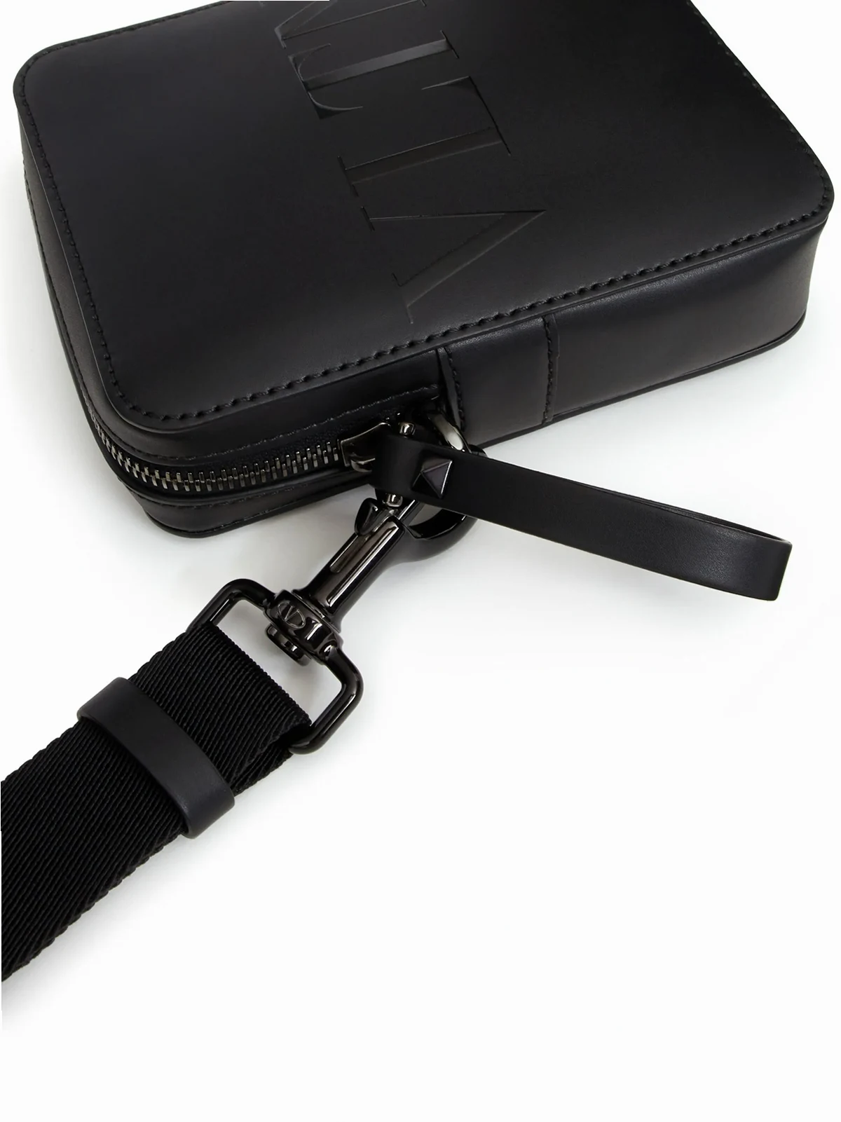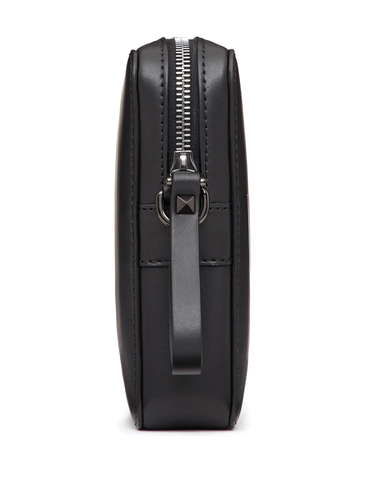 Schwarz Kalbsleder Logo-Print vorne Reißverschluss oben verstellbarer Schulterriemen Hauptfach