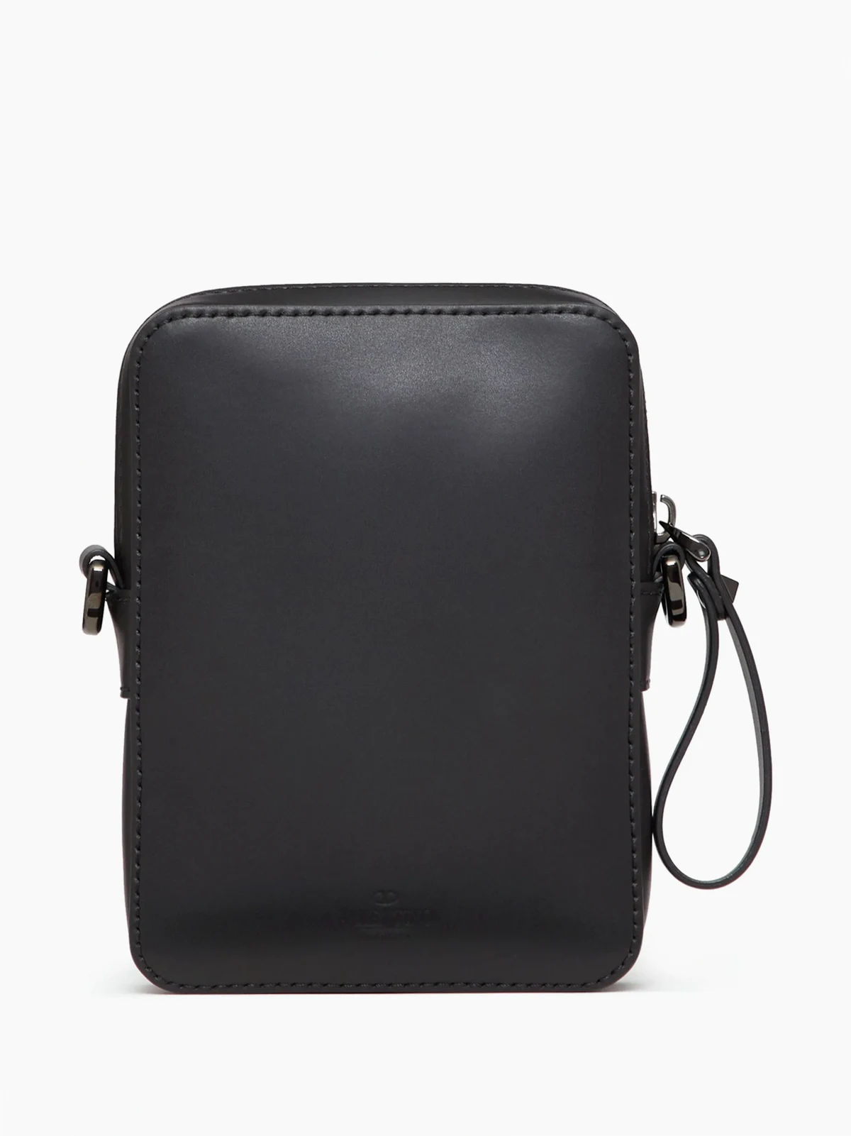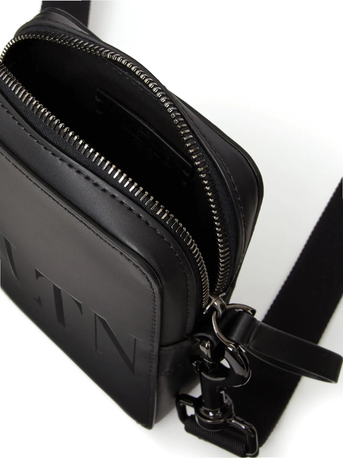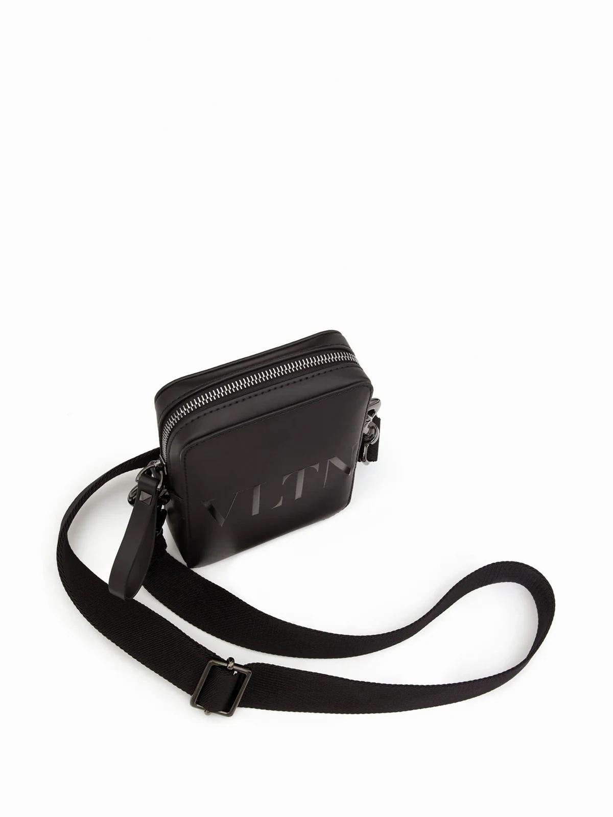 Schwarz Kalbsleder Logo-Print vorne Reißverschluss oben verstellbarer Schulterriemen Hauptfach