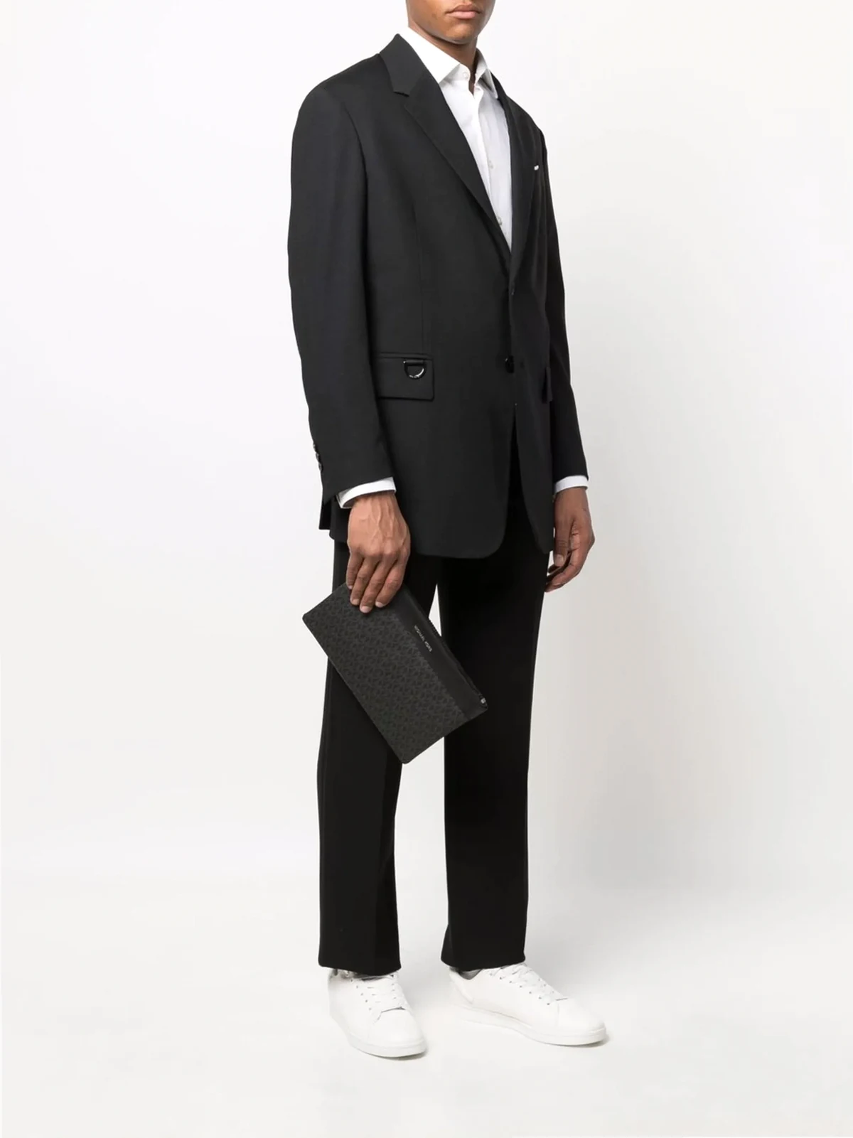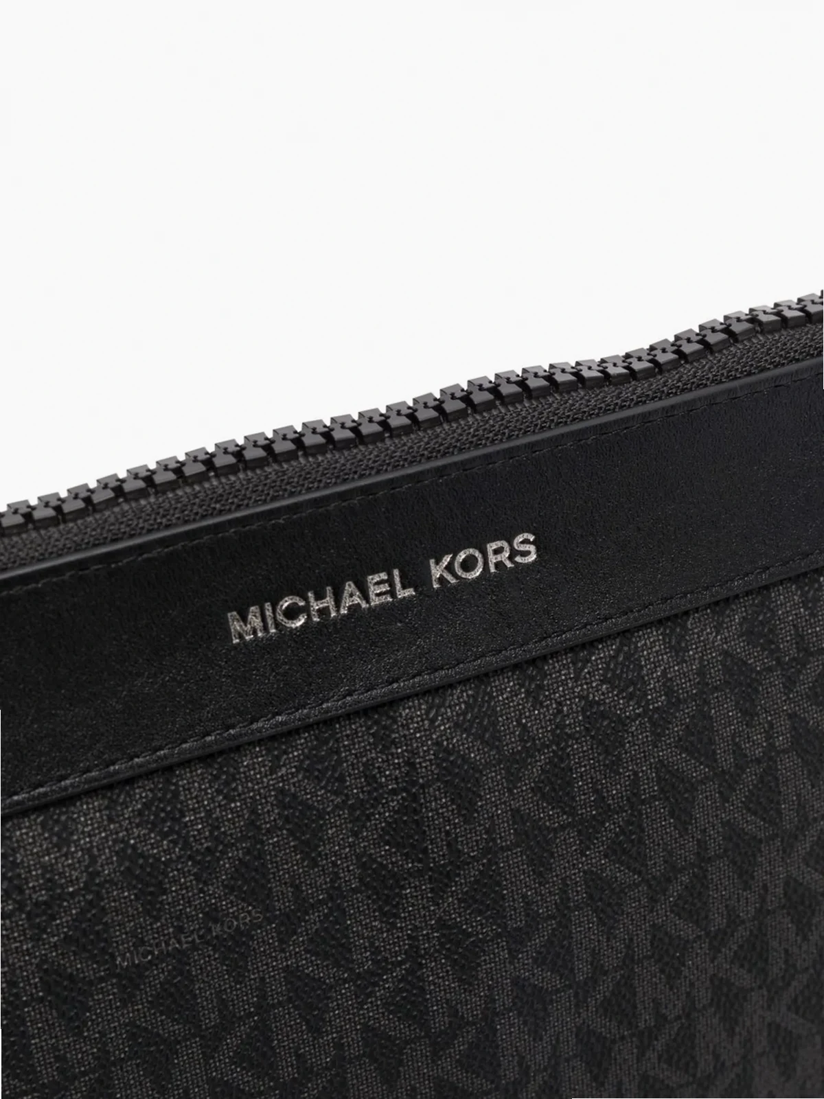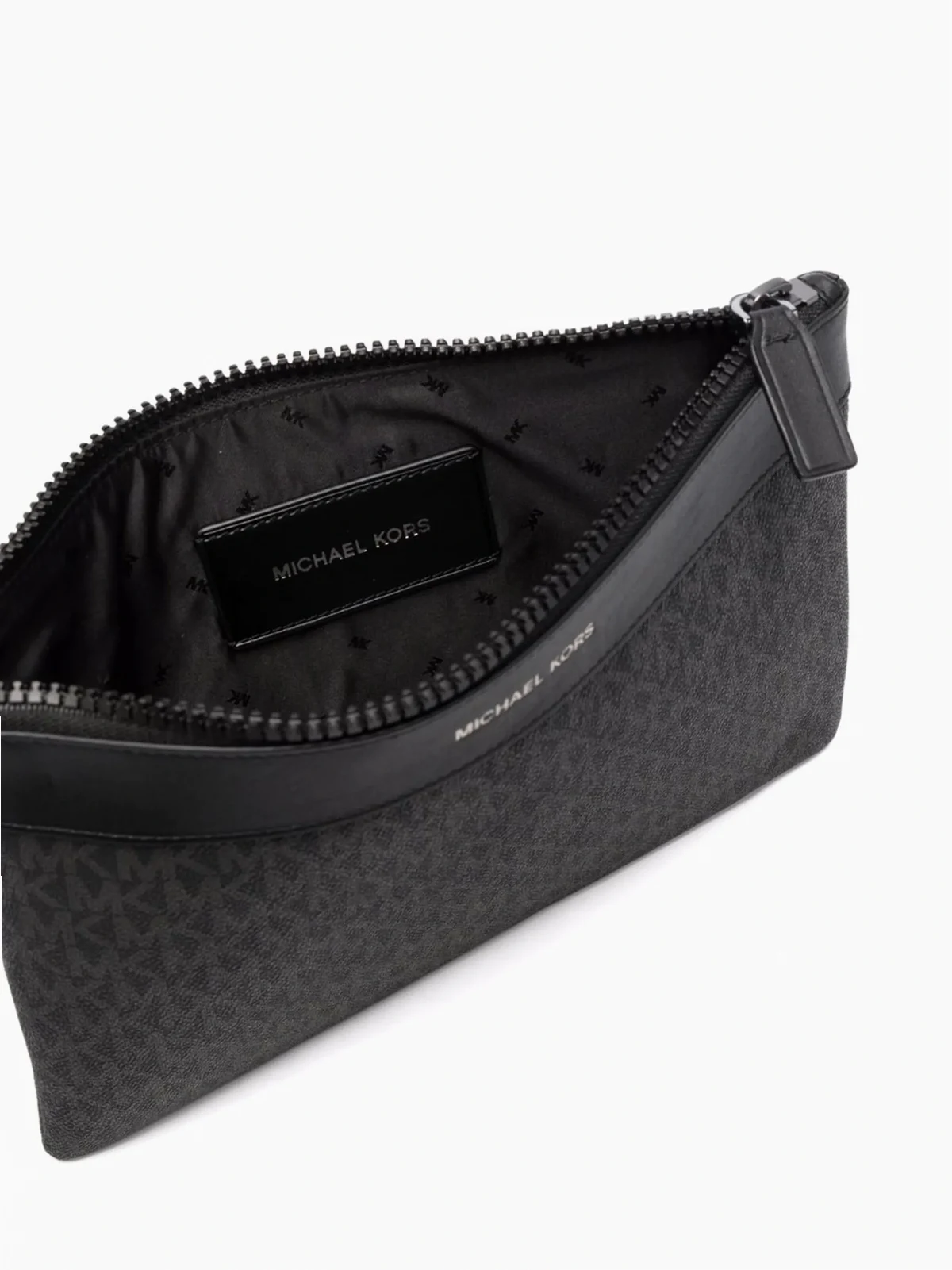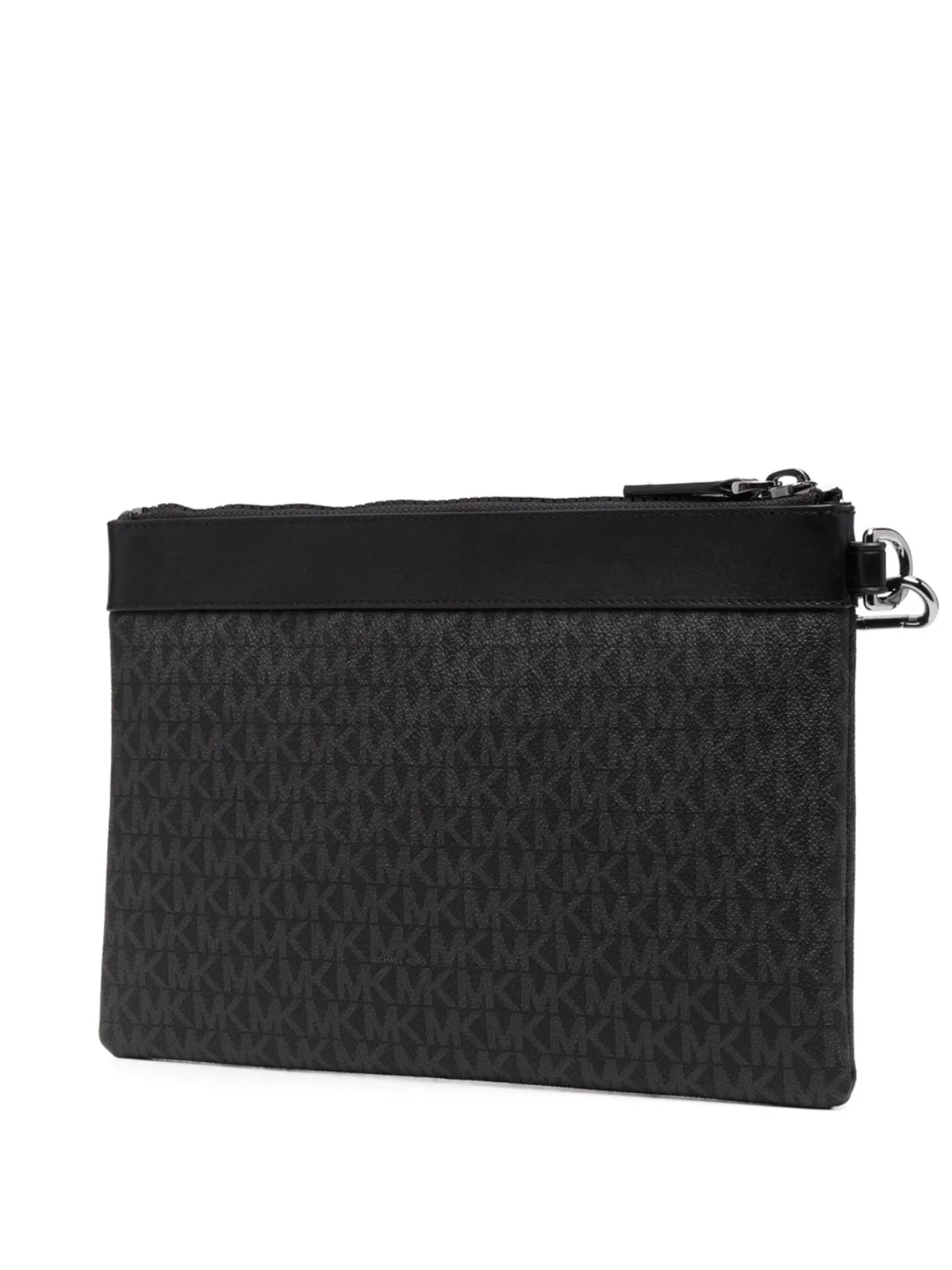 Strukturiertes Design, Monogrammmuster, Logo-Stempel vorne, Reißverschluss oben, Futter mit Logo-Print, Logo-Patch an der Innenseite. Farbe: Schwarz. Material: Leder.
