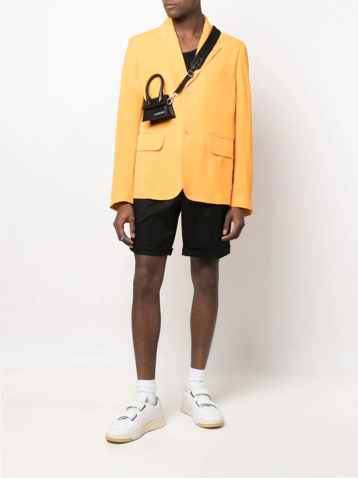 Silberfarbenes Logo, zwei Henkel, verstellbarer Schulterriemen, Klappe mit Magnetverschluss, Logo-Patch an der Innenseite. Farbe: Schwarz. Material: Leder.